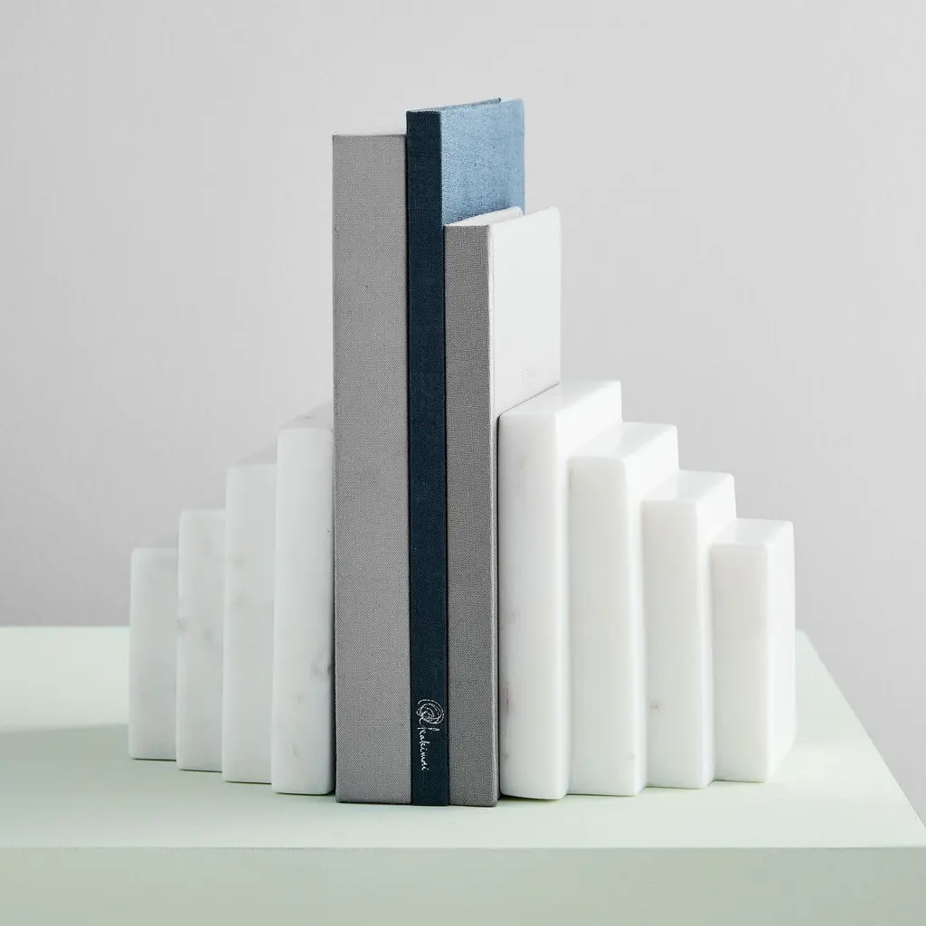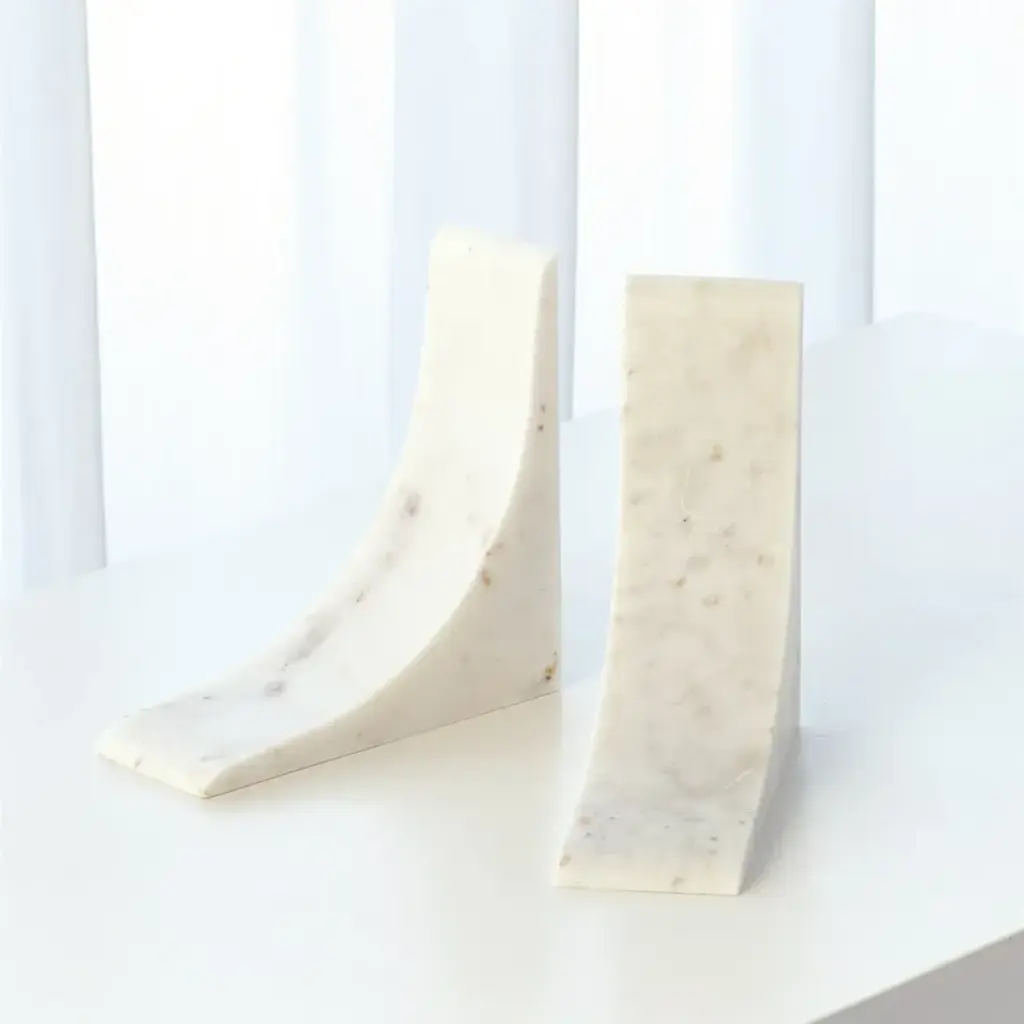 The sleek bookends are made of Banswara marble. Made in India. From a fashion forward perspective, Global Views offers accessories, furniture, statement lighting, and an assortment of rugs and mirrors to add beauty and joy to your home.