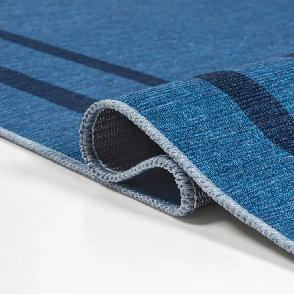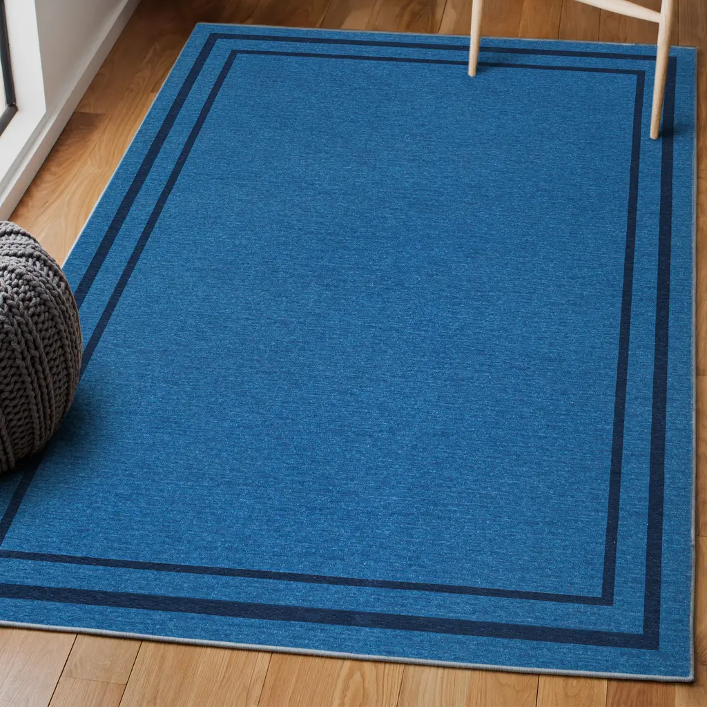 Our classic rug has a traditional striped border with a plain center field. It's woven from durable synthetic fibers with a plush chenille texture and cotton backing. This easy-care, washable rug is great for high traffic spaces like a living room, dining room or entry.