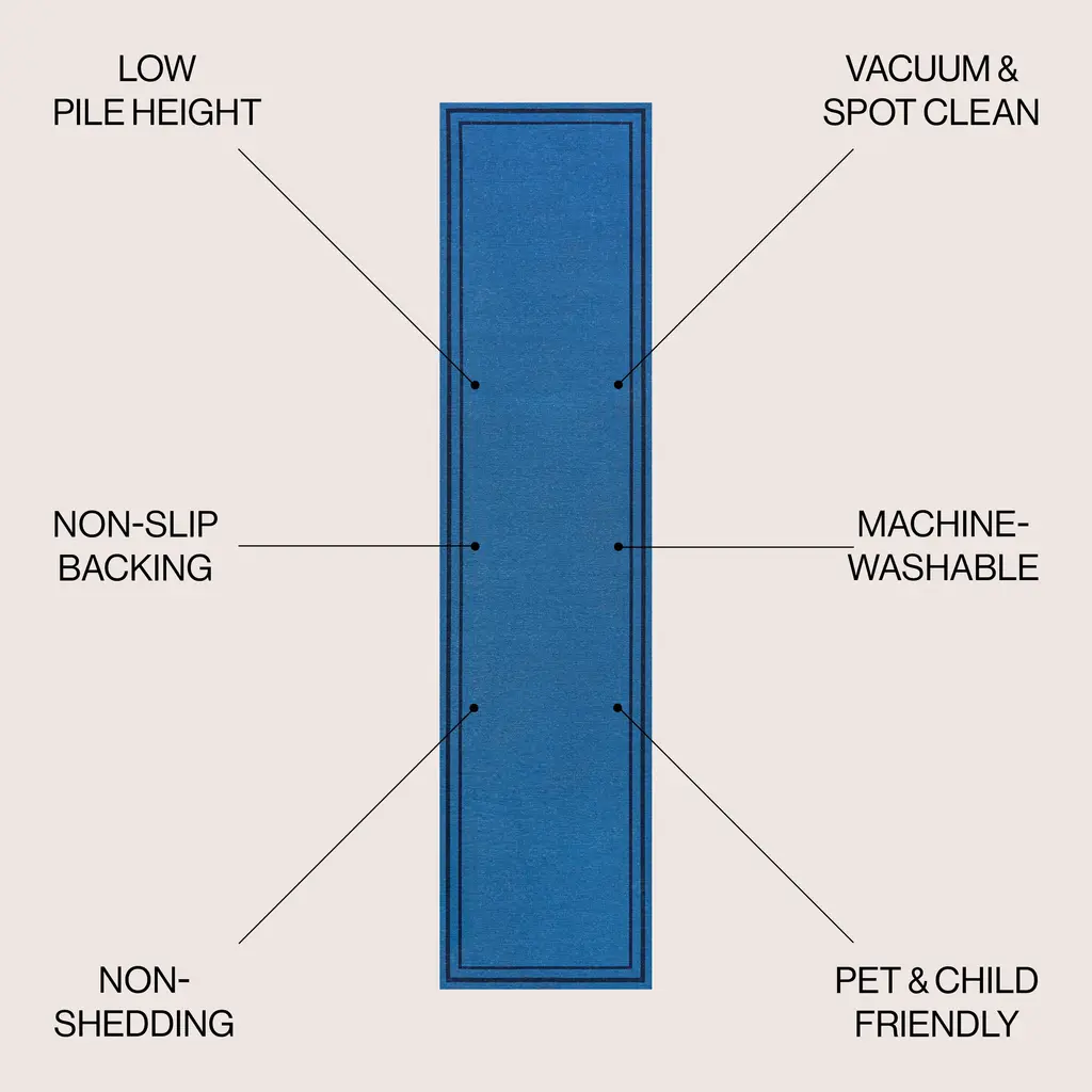 Our classic rug has a traditional striped border with a plain center field. It's woven from durable synthetic fibers with a plush chenille texture and cotton backing. This easy-care, washable rug is great for high traffic spaces like a living room, dining room or entry.