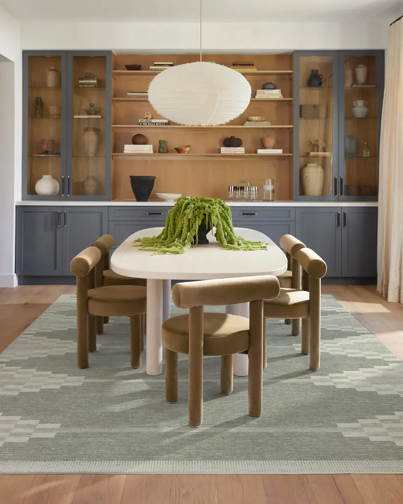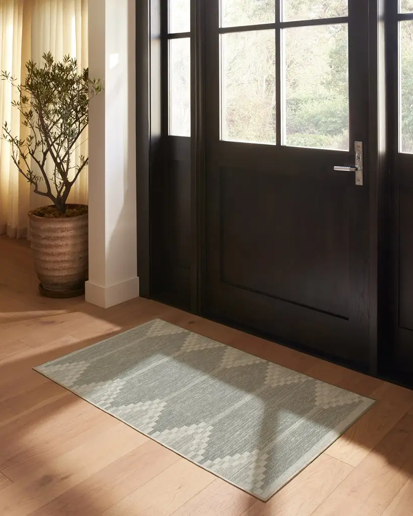 It's all in the details. Our Sloane Grey Rug features a creative geometric design with wide, ivory chevron borders against a neutral grey background, all inspired by a rustic hand loom. Water-resistant, stain-resistant, and machine-washable. Rug colors may vary slightly according to your device and the lighting in your space.