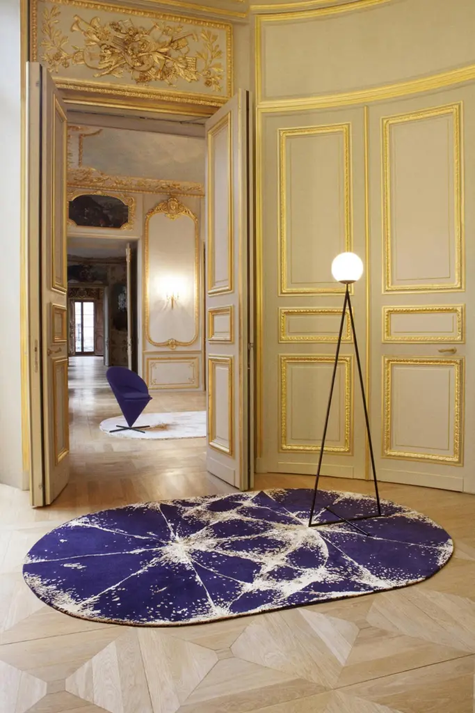 Small hand knotted "Nakshatra" rug - Florian Pretet and Lisa Mukhia PretetDimensions: 140 x 200 cmMaterials: 75% Himalayan wool, 25% silkHand knotted in Nepal100 knots/inch²Made to order creation can be doneAtelier Fe´vrier designs and creates luxury, timeless, statement rugs. They don’t aim to follow any trend but to be the reflection of a genuine everyday life’s inspiration. The signature patterns are richly detailed, highlighted by a one-of-kind color palette and original cut-outs. The designs are the result of a thorough manual process for a natural finish. First being hand-drawn on paper, then scaled-up and hand knotted by expert weavers, the steps involves the combined workforce of around 50 people. Each rug is therefore unique due to its handmade nature.The rugs are made of premium wool from Tibet - known to have a high content of lanolin that protects the rug over time and ages beautifully - and the finest silk from China for added lustre and durability, ensuring the rugs being suitable for personal and public spaces. The average turnaround is minimum of 14 weeks. Fair trade standards and eco-friendly work methods are at the core of Atelier Fe´vrier’s approach. Atelier Février is committed to using 100% natural fibers and dyes, creating ethical work opportunities for those in Nepal and Tibet and promoting traditional Asian craftsmanship.Founders of Atelier Fe´vrier, Florian Pretet and Lisa Mukhia Pretet design together outstanding rugs skillfully hand knotted in Nepal. Their pieces are the epitome of contemporary art fused with traditional craftsmanship.A graduate form the Parisian Fashion School Studio Berc¸ot. Florian Pretet is a French designer who worked several years for a prestigious French fashion brand that led him to Kathmandu. Through Atelier Fe´vrier he breathes life into his drawing, translating them into beautiful design pieces.Born and raised between Darjeeling and Kathmandu - where traditions are the culture’s cornerstone - Lisa Mukhia Pretet is a keen entrepreneur with a strong love for fashion and craft. She lived in Nepal for 15 years where her work experience and her exposure to vernacular techniques, brought forward her fascination for traditional crafts that have been passed along for generations.Real life partners, coming from different cultural and professional background, their association is drawn from those common passions for art, fashion, craft and expertise.