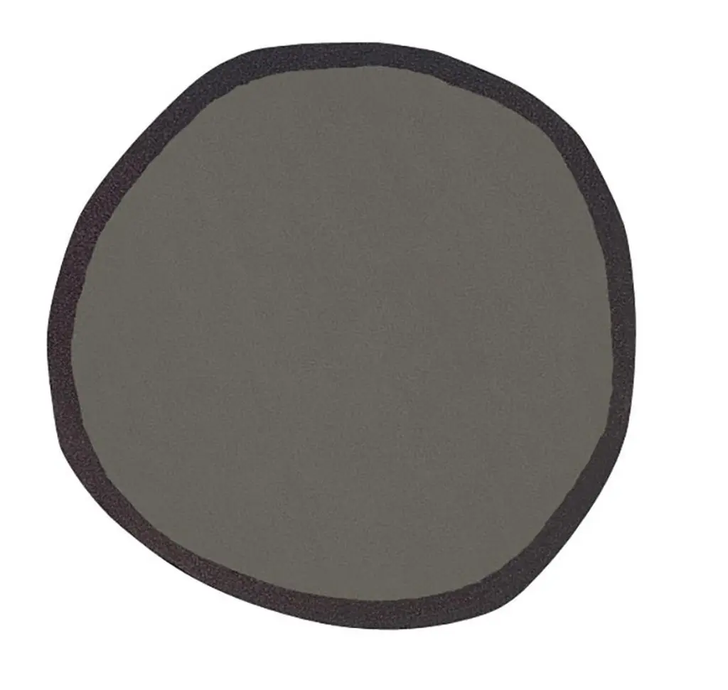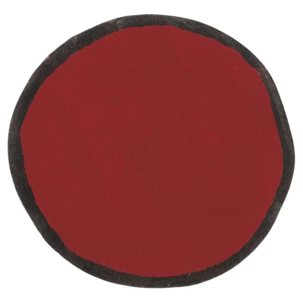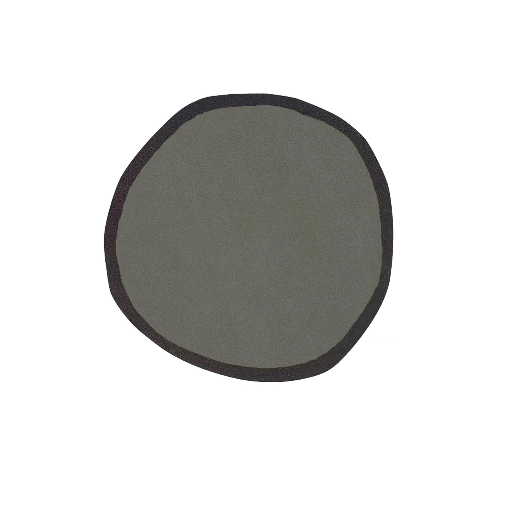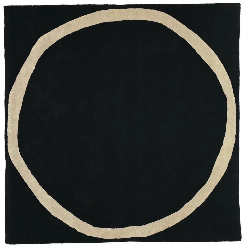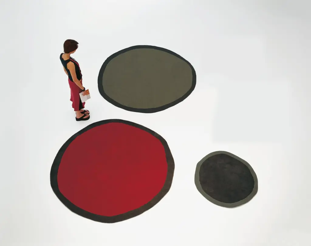 Small Nanimarquina 'Aros' round rug in black and gray. Executed in 100% hand-tufted New Zealand wool. This geometric design comprised of contrasting colors is a rug that is never exact or symmetrical. Its subtle asymmetry invites freedom from conventional uses, making it possible to combine more than one piece to create new volumes in a single space. Its slightly irregular outline allows the handmade nature of this area rug to shine magnificently. Price is per item. Available in unlimited quantities and in two sizes. Choice of black and gray or red and black color palettes. This listing is for the small size rug in black and gray. Custom sizing available upon request.Standard in-stock lead time 2-3 weeks. Out of stock or custom sizing can add an additional 11 weeks or more. Inventory availability subject to change at any time.Made to order. All sales are final.Please note that due to the organic and handmade nature of this fiber some variation in color may occur from piece to piece, which may become further pronounced with prolonged exposure to sunlight.Also note this item must ship directly from Nanimarquina’s fulfillment center, so 1st Dibs arranged shipping and local pick-up are not an option. Shipping cost quoted is per item and cannot be combined.
