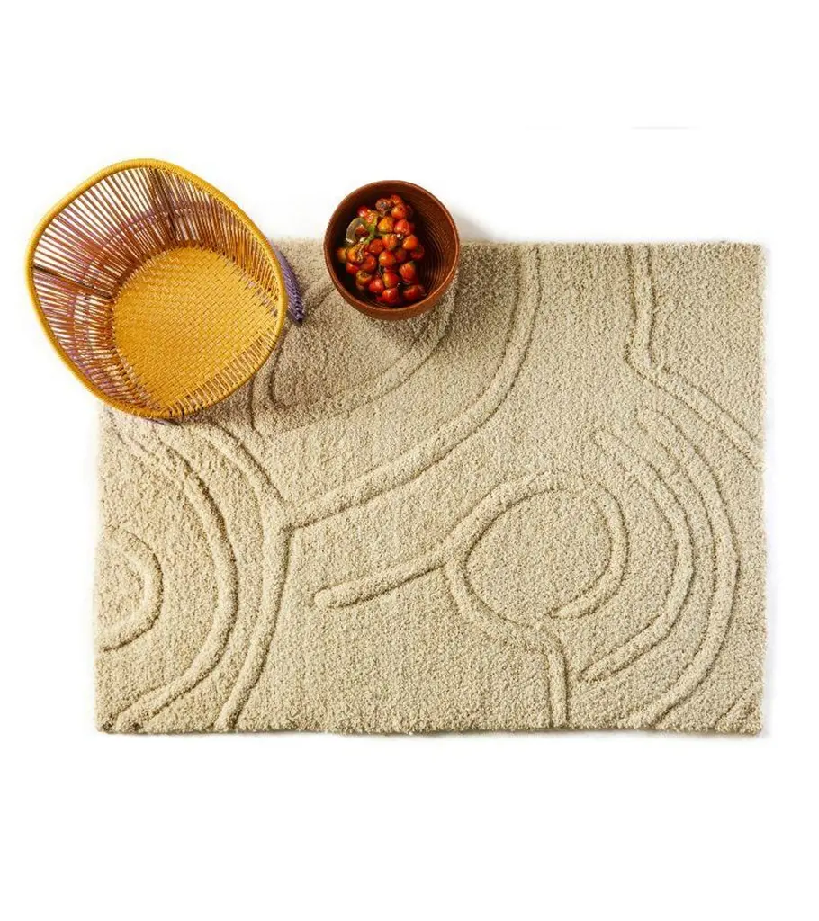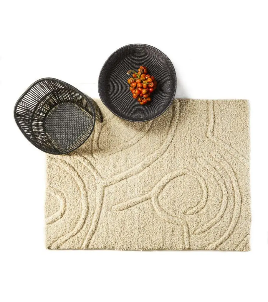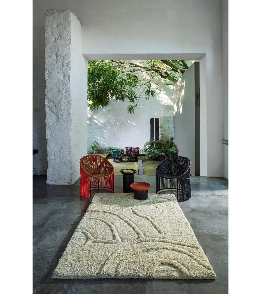 Small zenues rug by Sebastian HerknerMaterials: 100 % natural virgin wool. Technique: Hand-woven in Colombia.Dimensions: W 160 x L 220 cm Available in size large.The striking zenues rug, a design by Sebastian Herkner, is inspired by old Colombian civilizations. When visiting the jewelry museum in Bogota, the designer discovered the gold works by the Zenu culture, which are decorated with so-called Narigeura symbols. These peoples lived in the Caribbean plains, through which the three large rivers Magdalena, Cauca, and San Jorge flow. Routinely they’d flood the fields so the Zenúes built a vast system of channels covering more than 500,000 hectares, controlling the flow of the water so that people and harvest would be protected. These landscapes inspired first the goldsmiths of the Zenúes – and now Sebastian Herkner. “These graphic objects have intrigued me for quite a while. Their symbolism is so narrative and expressive”, says the designer. The result: a subtle, yet striking, wool rug with various pile depths in a gentle crème white. Each rug is woven with natural virgin wool on traditional looms in ateliers in the Colombian Andes. The ‘channels’ of the monochrome rugs are shaven by hand into the pile and it takes the craftspeople four weeks to complete one rug. German designer Sebastian Herkner is a long-term collaborator of Ames and has visited Colombia multiple times to experience the country’s cities, nature and people first hand. He also visited many of the ateliers that Ames has partnered with to learn about the unique traditional crafts of Colombia's regions. A sought-after contemporary designer and recipient of many industry awards, he has worked with many international design brands, creating intriguing pieces that showcase his intuition for interesting material, color, and texture combinations.