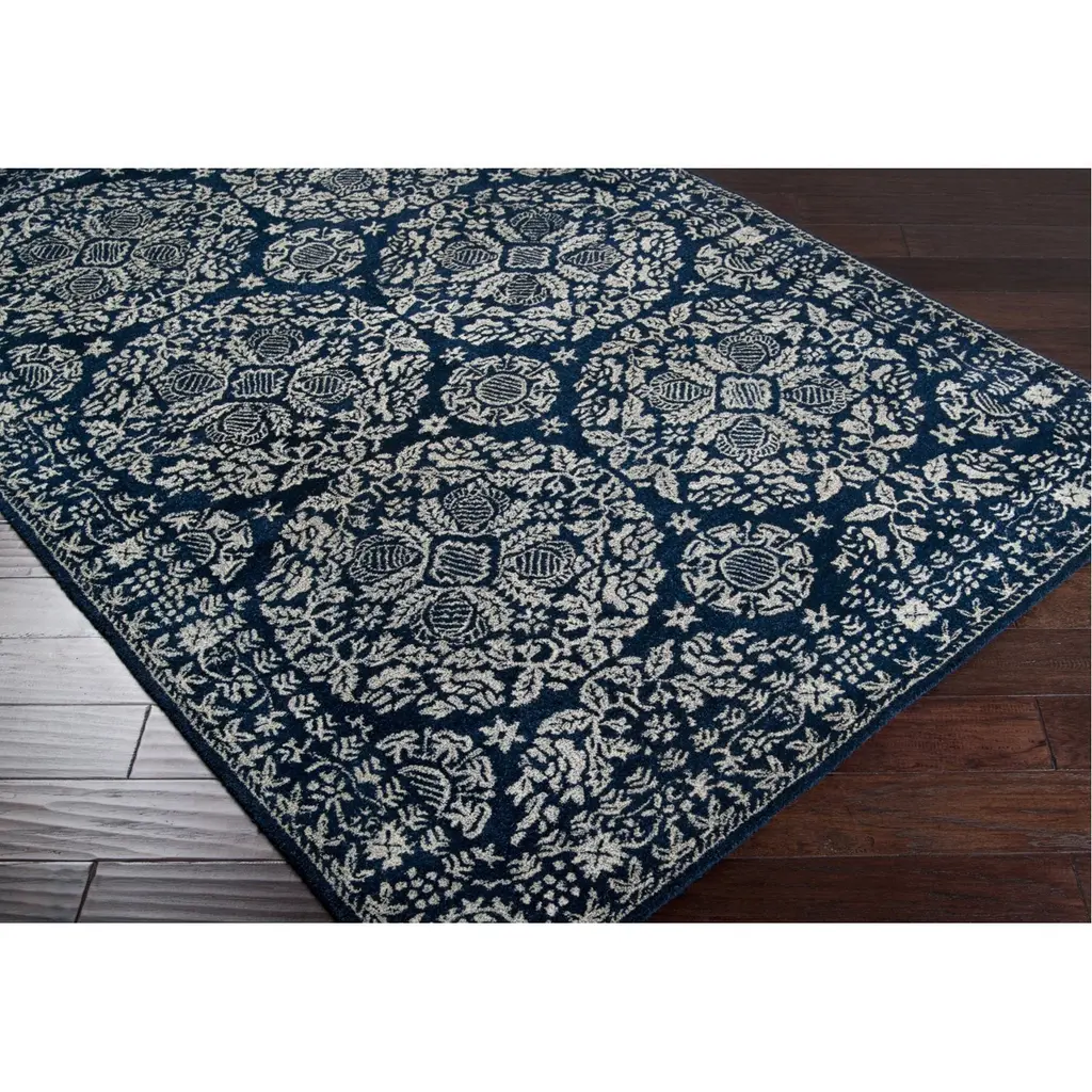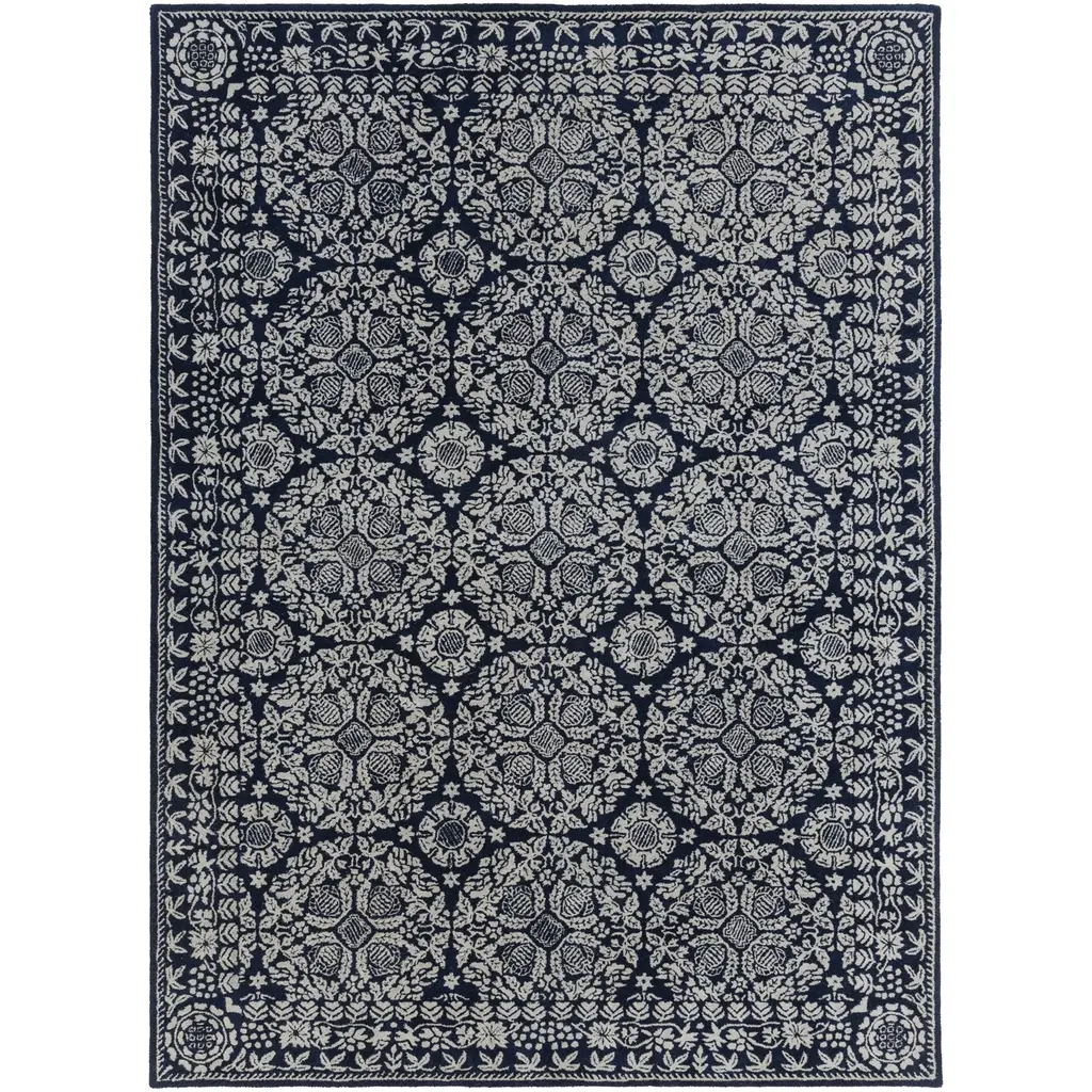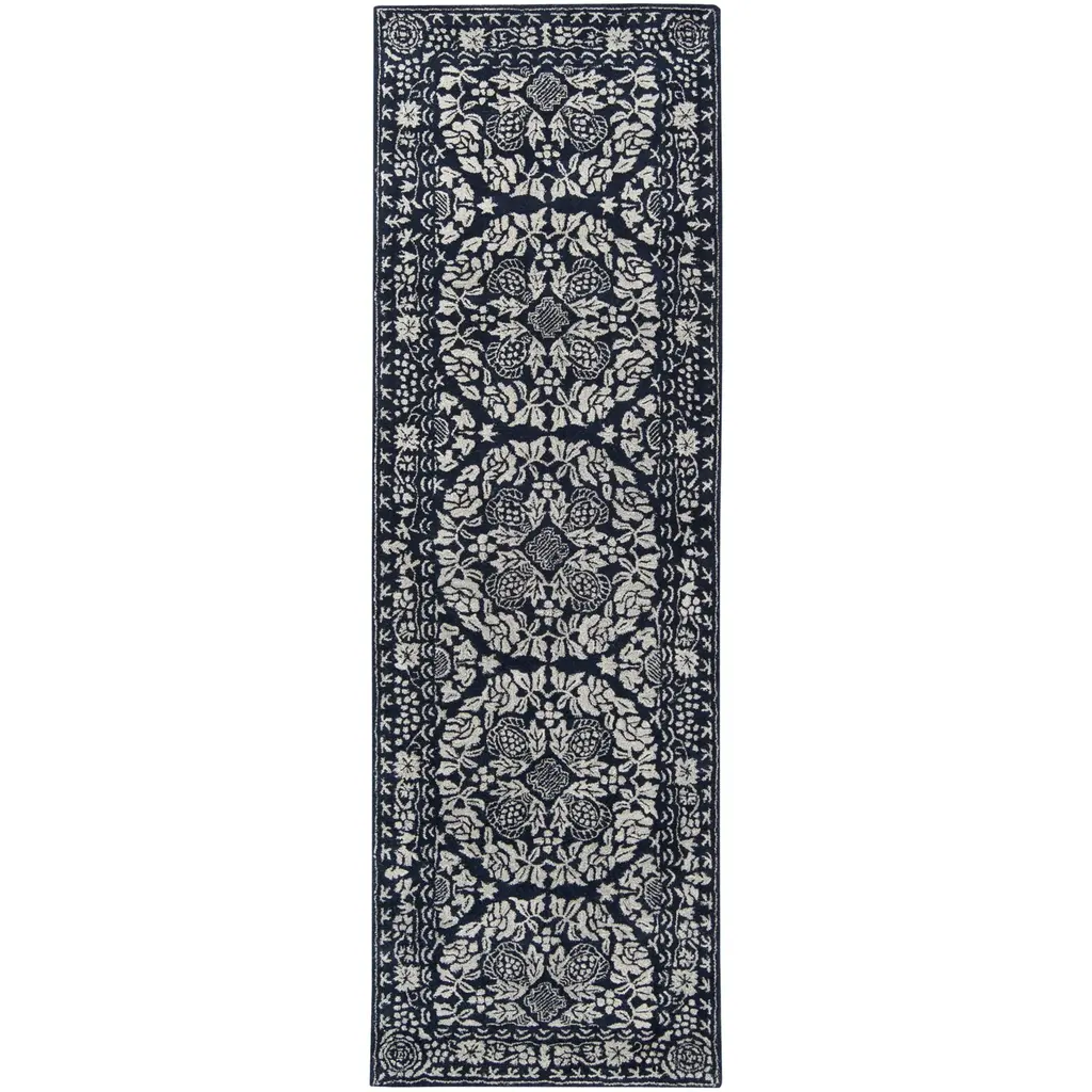 The Smithsonian Collection showcases traditional inspired designs that exemplify timeless styles of elegance, comfort, and sophistication. With their hand tufted construction, these rugs offer an affordable alternative to other handmade constructions while perserving the same natural demeanor and charm. Made with NZ Wool in India, and has Medium Pile. Spot Clean Only, One Year Limited Warranty. Collection: Smithsonian Materials: 100% NZ Wool Construction: Hand Tufted Pile Type: Medium Pile Colors: Dark Blue, Light Gray Country of Origin: India