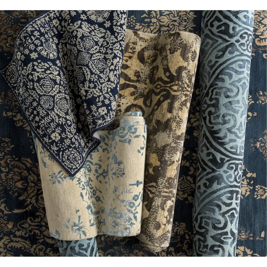 Smithsonian Collection Wool Area Rug In Dark Slate Blue, Dove Grey, And Parchment Design By Smithsonian