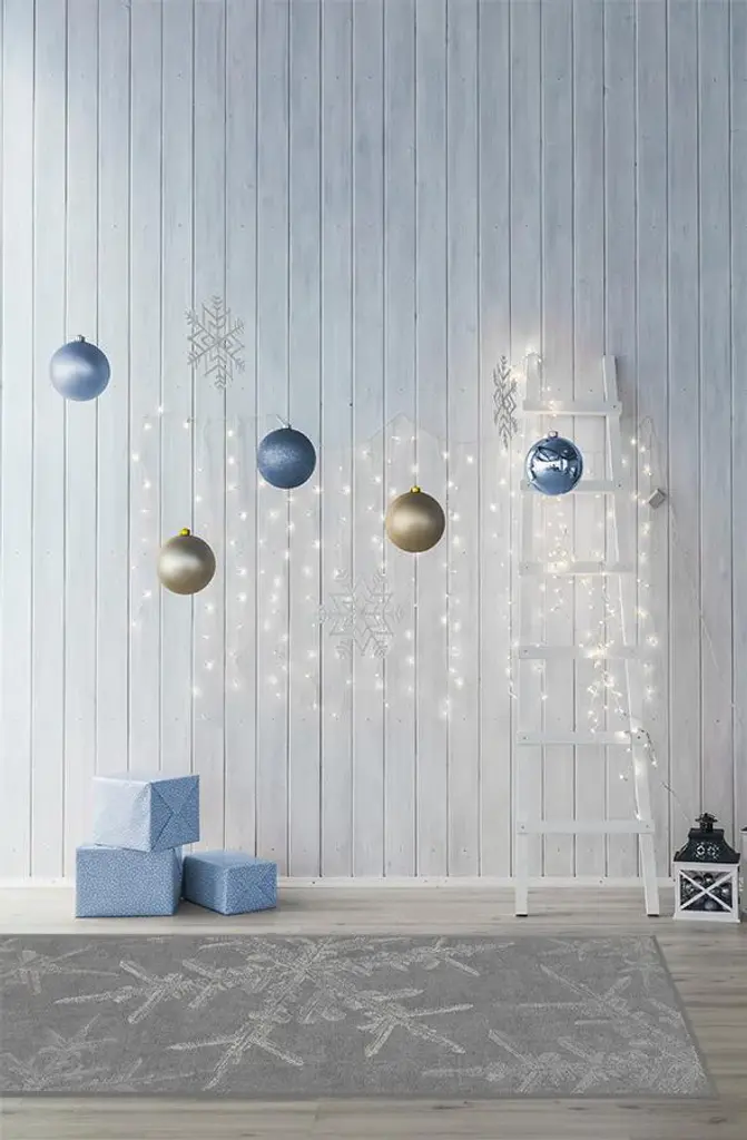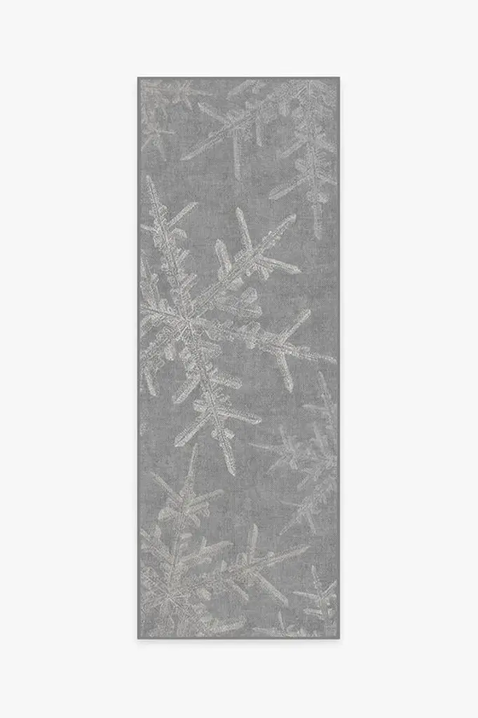 Let it snow with our splendid Snowflake Silver Rug, designed with floating ice crystals of pearl and silver taupe for both a contemporary and classic addition to your holiday home decor. Water-resistant, stain-resistant, and machine-washable.