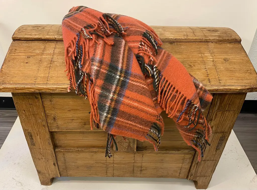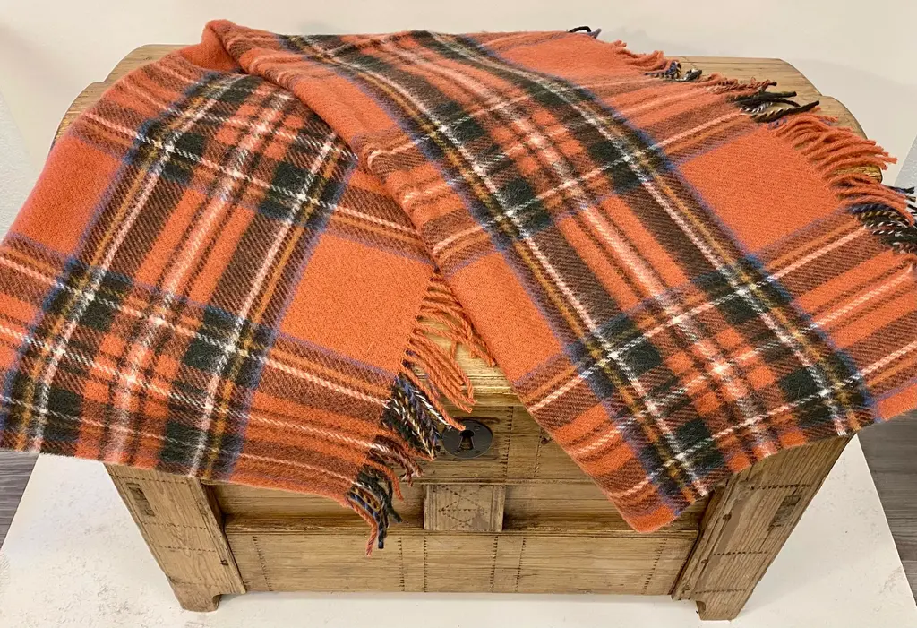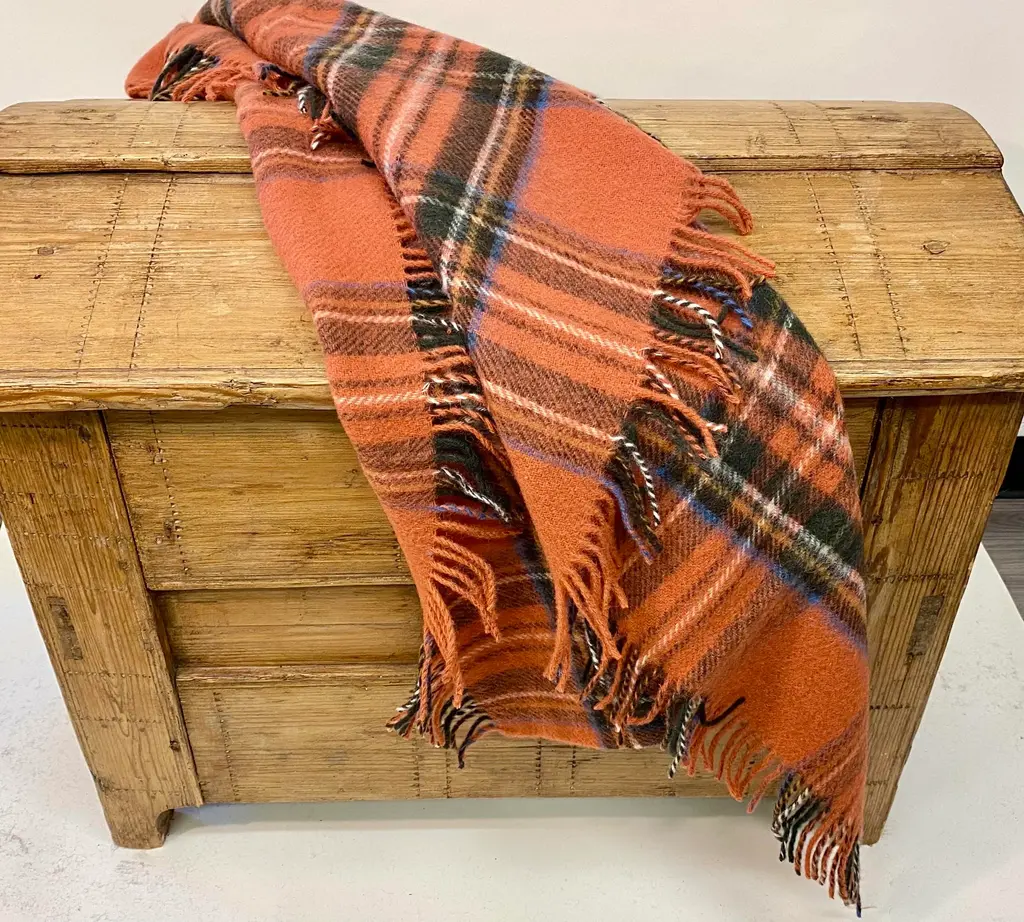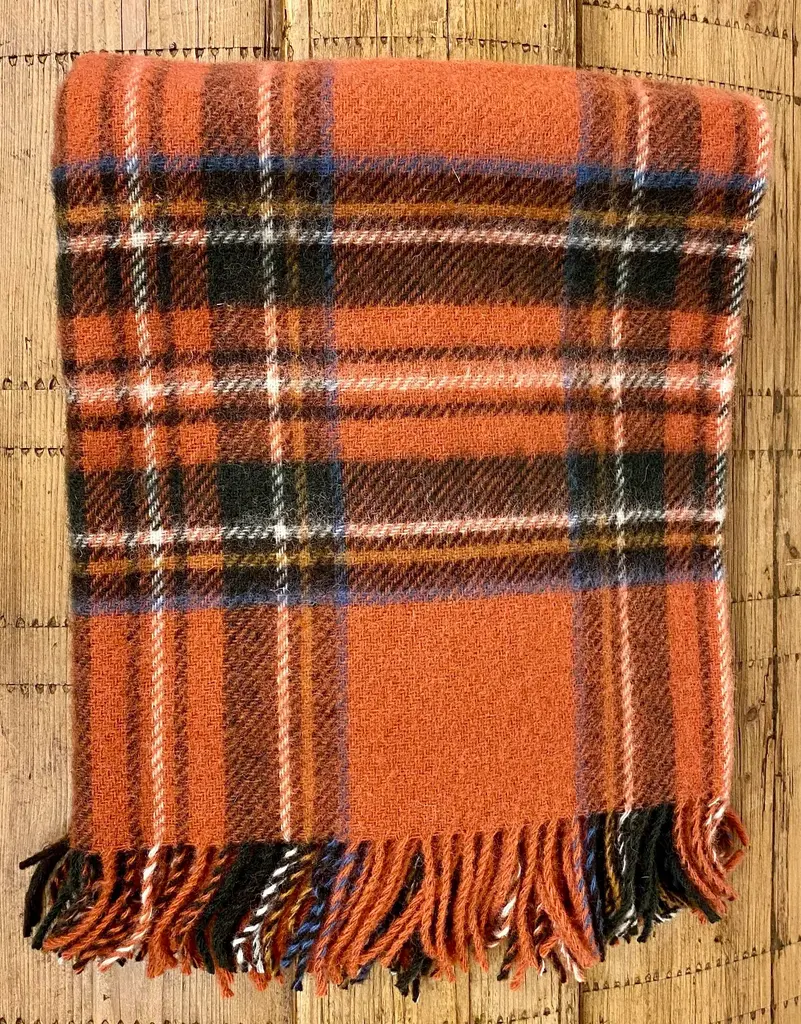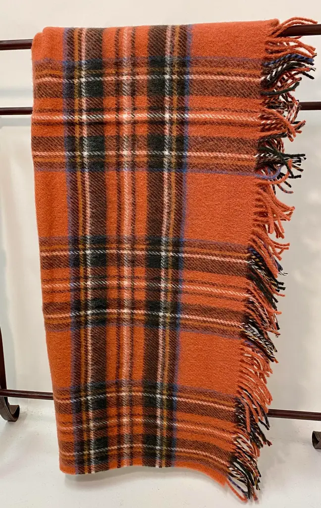 Merino Lambswool Knee Rug/Blanket In A Classic Muted Red Plaid Pattern- Made In England. Our knee blankets are cut to a smaller size then a traditional throw which is perfect for laying across your knees, dressing furniture, wrapping around your shoulders and bringing along as a travel blanket. Established in 1837 with over 180 years of proud British manufacturing & design heritage already to our name, They are one of Great Britain’s last remaining vertical woolen mills. The term ‘vertical’ is a throwback to the Victorian era when mills would rise several stories, with each floor containing separate parts of the manufacturing process. Today it remains a unique confirmation of our authenticity; we control every stage of production from raw wool to finished product including Dyeing, Blending, Carding, Spinning, Warping, Weaving, and Finishing. They create their products with a balance between innovative design & traditional craft, maintaining their position at the forefront of commercial trends with consistent high quality. Perfect for a wedding gift or a birthday gift. Can also be worn over the shoulders or used to dress a piece of furniture. Size = Approx 54 inches x 31 inches, not including the fringe. Dry clean.