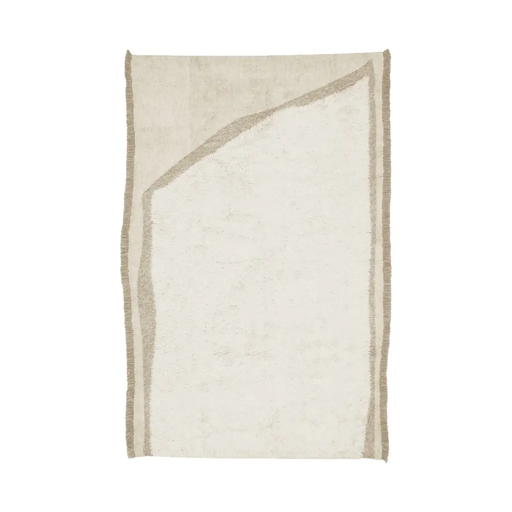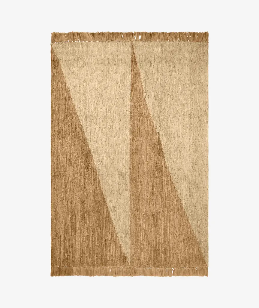 Introduce a touch of sophistication and softness to your space with the Soil Kelim Rug from Ferm Living. Hand-woven from 100% New Zealand wool, its natural tones and irregular stripes evoke the stunning patterns of geology. The fringed edges add a comforting tactile element, making this rug a luxurious addition to any space. Highlights