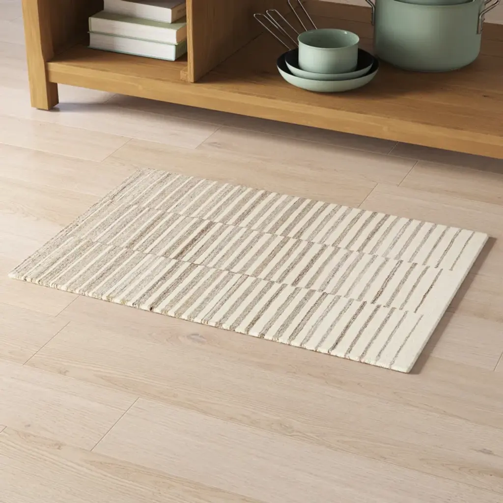This beautiful Sojourner area rug is the perfect piece for any modern home. Featuring a hand tufted construction and made of recycled PET yarn and wool, it offers an incredibly comfortable medium pile feel underfoot. The unique blend of materials provides superior durability and sustainability, while its design adds an elegant touch to any room in your house. Made in India, this rug will be sure to make a statement in your home and last for years to come. Complete the look by adding a rug pad (not included) for extra cushioning and stability.