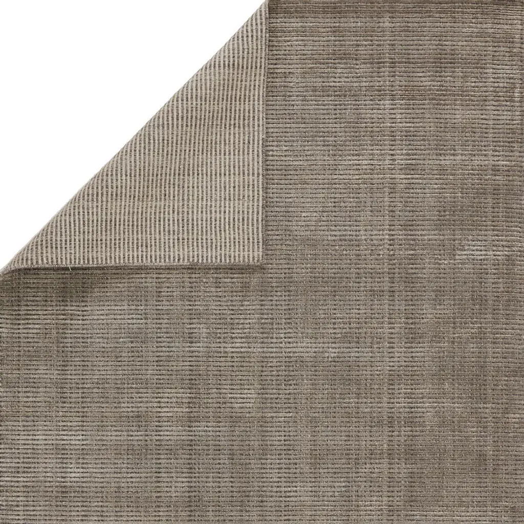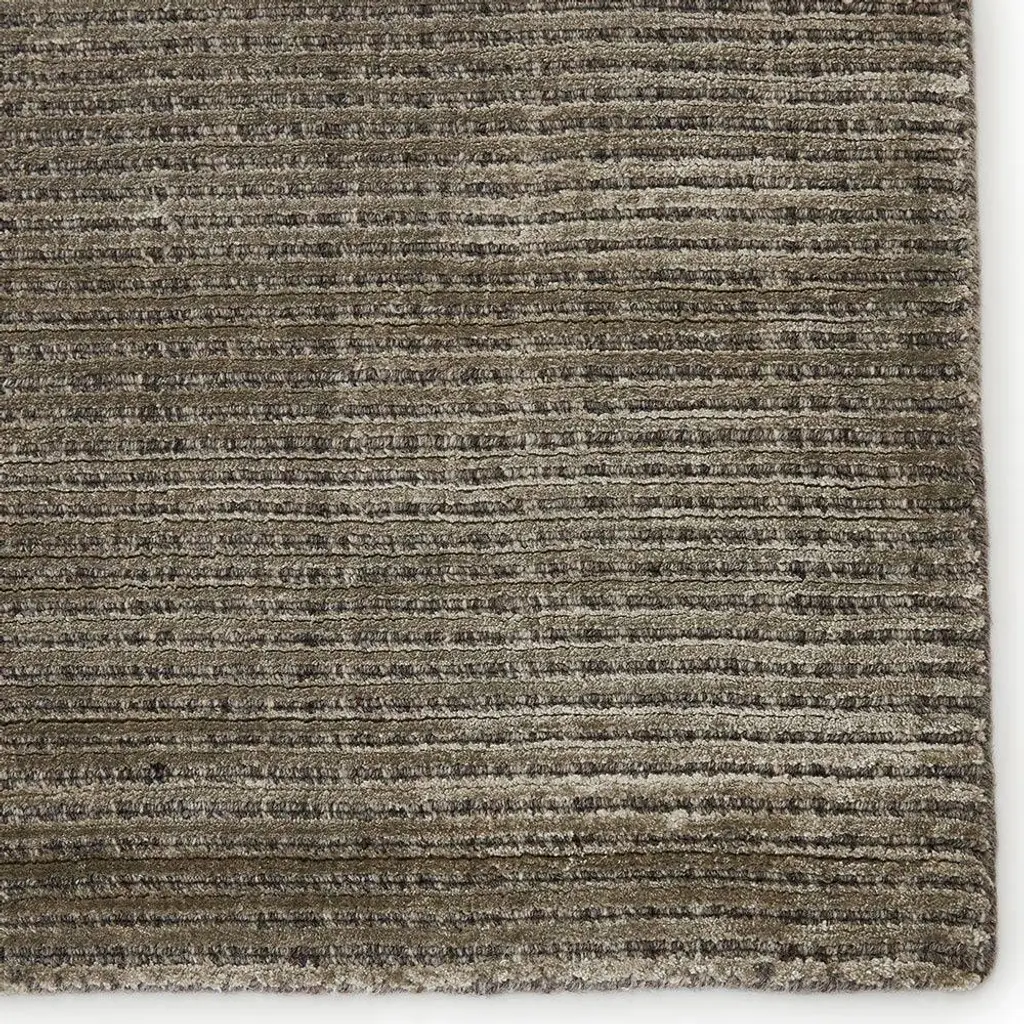 Rug swatch available! To order, choose SAMPLE in the size drop-down.Hand-loomed in India from wool and viscose, the refined 5’x8’ Solana rug is rich in texture and dimension. With tone-on-tone stripes finished in a lustrous taupe color, this versatile rug is the perfect backdrop for any modern home.