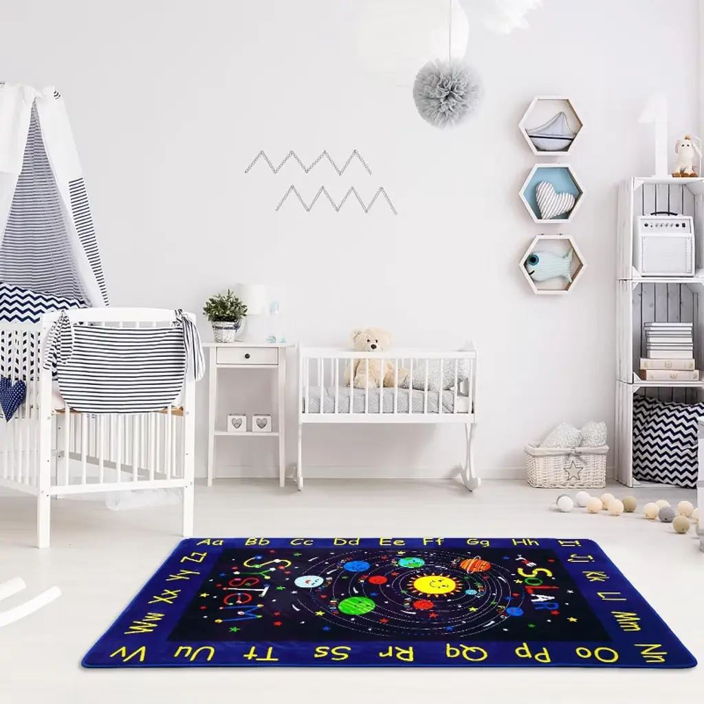 Solar System Kids Area Rug , Outer Space Rug , Ultra Soft Low Plush Cosmic Planet Theme Kids Play Mat , Non-slip , Classroom/bedroom/playroom