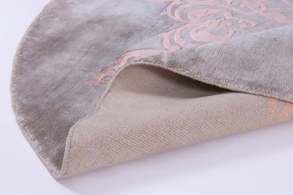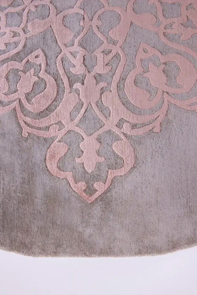 Sole is a handmade round rug.The name DaFé is taken from a tool used in carpet weaving which is tapped on the carpet to reinforce its knots. The DaFé collection started in 2014 from a study on old weaving methods and patterns. The experience of many generations in the field of carpets weaving and their knowledge of patterns and methods belonging to the various regions where this profitable craft started contributed to the creation of this unique hand-crafted collection. DaFé Collection is the result of a different approach to rugs as complementary parts of the interior environment. Despite appearing as an independent item, it has a strong and substantial harmonizing function. It is a versatile element that contributes to fulfilling a wide range of purposes such as the space’s mood, style and texture. Our work aimes at creating outstanding designs and using techniques of different eras belonging to different cultures and regions, to offer customers a handmade collection with a contemporary taste.Provenance: IndiaManual fabric cutting