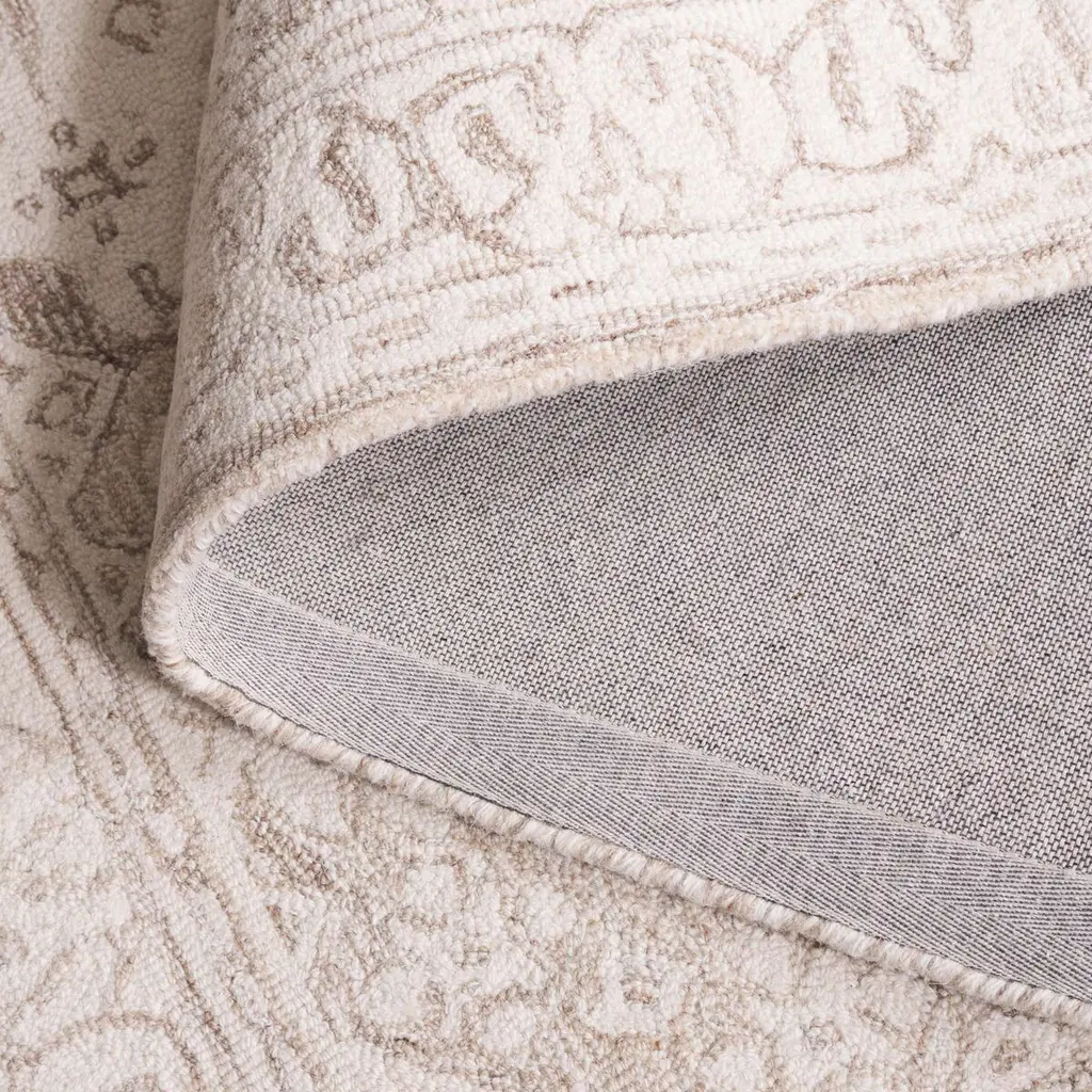 Elevate your living space with our handcrafted 4' x 6' area rug, a testament to exquisite taste and craftsmanship. This luxurious piece is artfully constructed in India using the hand tufted technique, ensuring a high-quality, dense wool pile that is both soft underfoot and durable. With a pile height of 3/8", it delivers a plush, comfortable feel that is perfect for any room. The rug's modern style is seamlessly expressed through its delicate ivory and grey color palette, creating a serene and inviting atmosphere. Its small rectangular shape makes it an ideal accent for a variety of spaces, adding elegance and charm. The design features traditional motifs with a contemporary twist, showcasing intricate patterns and floral elements that capture the eye. This wool pile rug marries traditional design with modern sensibilities, making it a timeless addition to your home decor. Whether placed in a living room, bedroom, or study, this piece will bring a touch of sophistication and tranquility that only a handcrafted rug can offer.