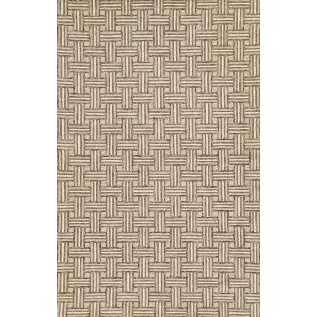 Solene Updated Traditional Brown Wool Basketweave Patterned Rug - 5'x8'