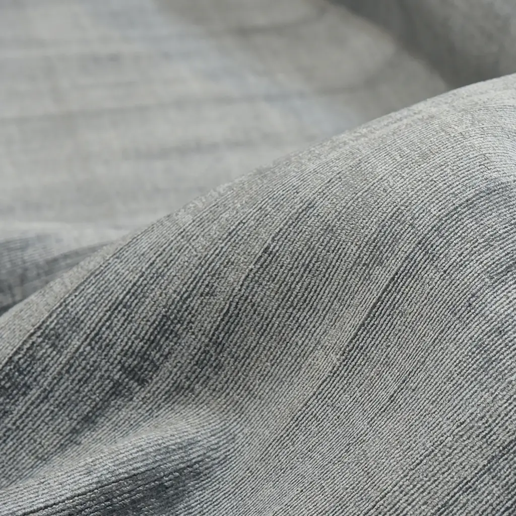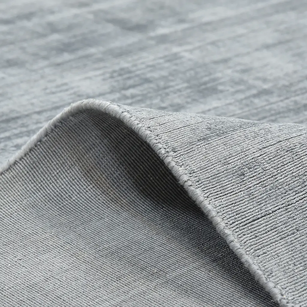 This Solid Art Silk rug from India features a minimalist design with a gradient tones for a modern look. Hand-loomed for quality, this rug has a textured appearance that adds depth to any room. Perfect for adding a touch of sophistication to your space.