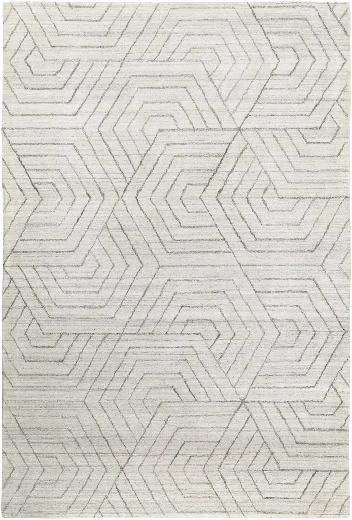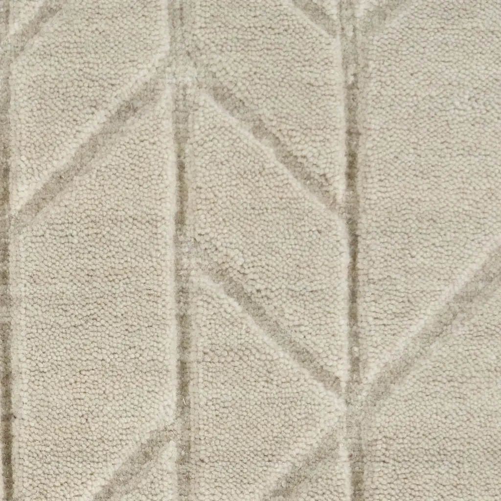 The Solid Essentials Wool Rug from the Rug Essentials collection provides a foundation of comfort and contemporary style. Measuring 7'9" x 9'9", this area rug is designed to define larger spaces such as living rooms, dining areas, or master bedrooms. Crafted in India from 100% European Wool, the rug features a durable, soft pile. Its beige color offers a neutral base adaptable to diverse interior palettes. A subtle, carved geometric pattern is integrated across the surface, creating textural depth with interconnected abstract shapes. This design element adds visual interest while maintaining an understated aesthetic. Wool, as a natural fiber, offers inherent benefits including resilience, natural stain resistance, and sound-absorbing properties. This makes the Solid Essentials Wool Rug a functional and stylish addition, enhancing warmth and comfort in a variety of home settings.