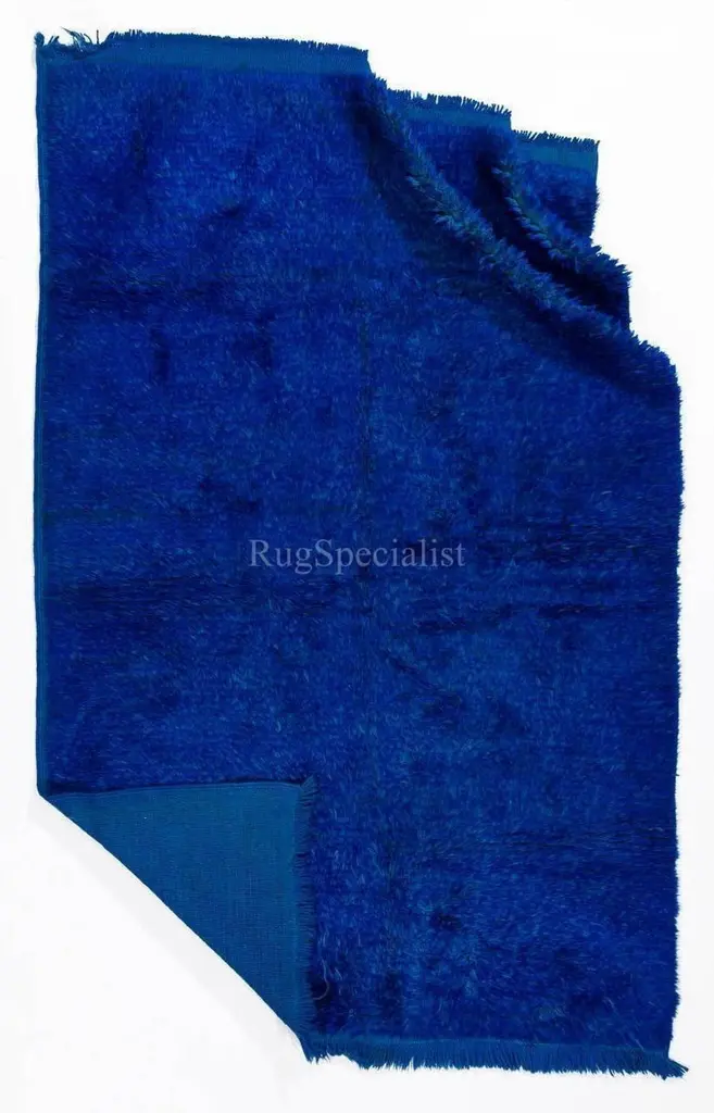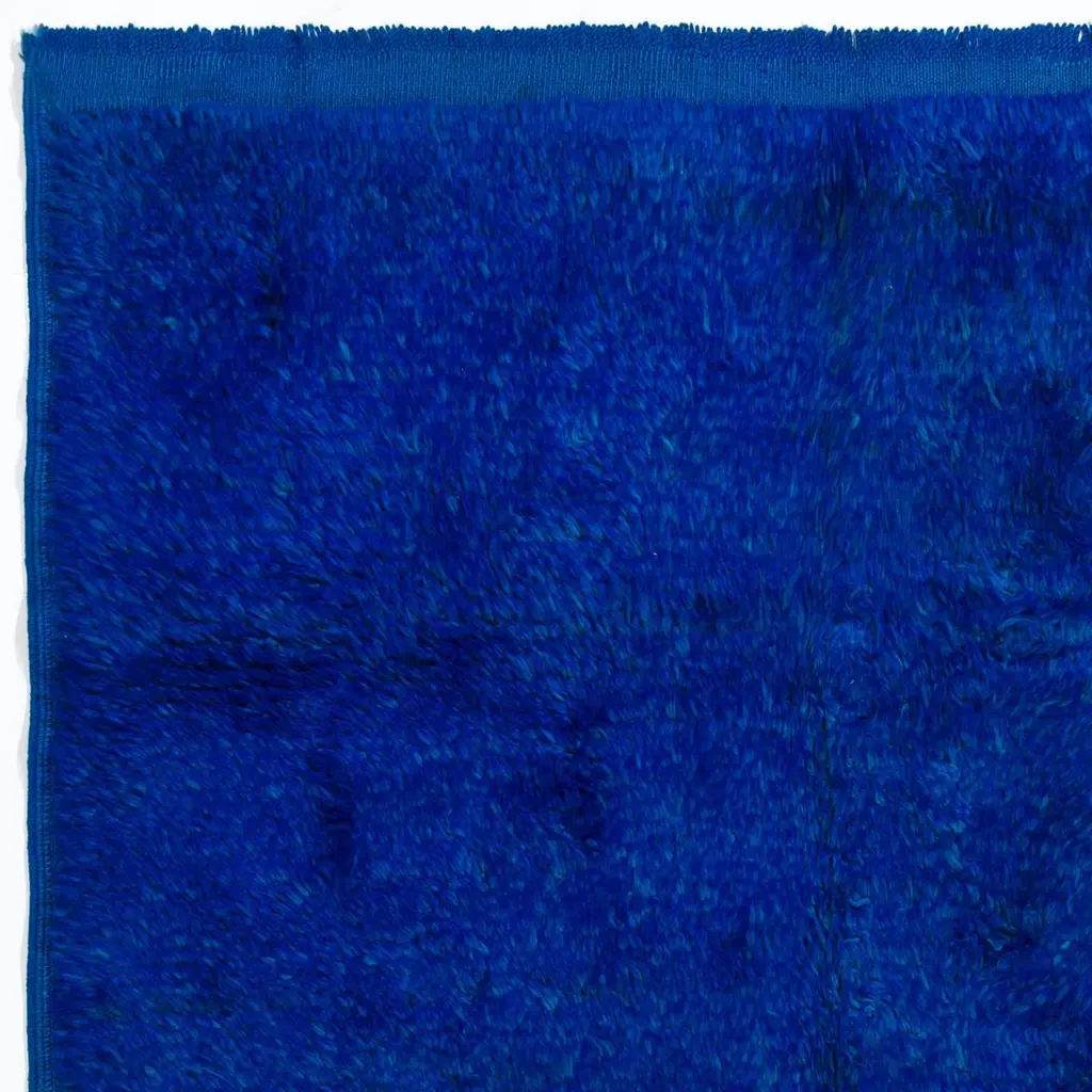 Solid Indigo Blue Color Handknotted Tulu Rug. All Wool. Custom Options Available