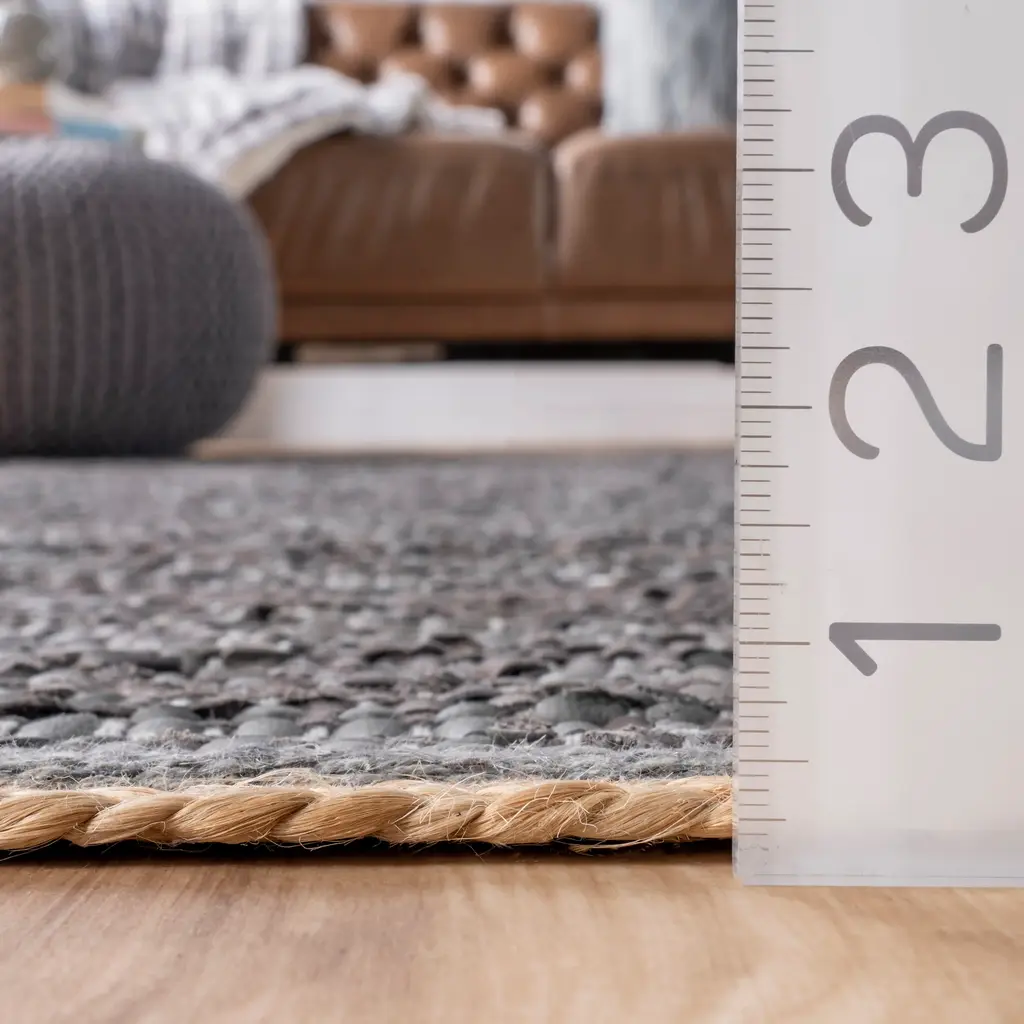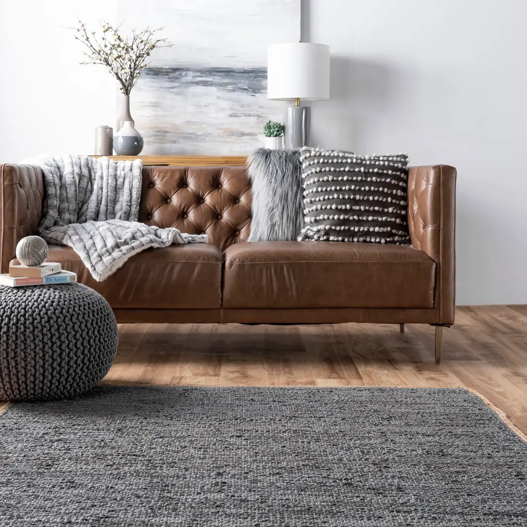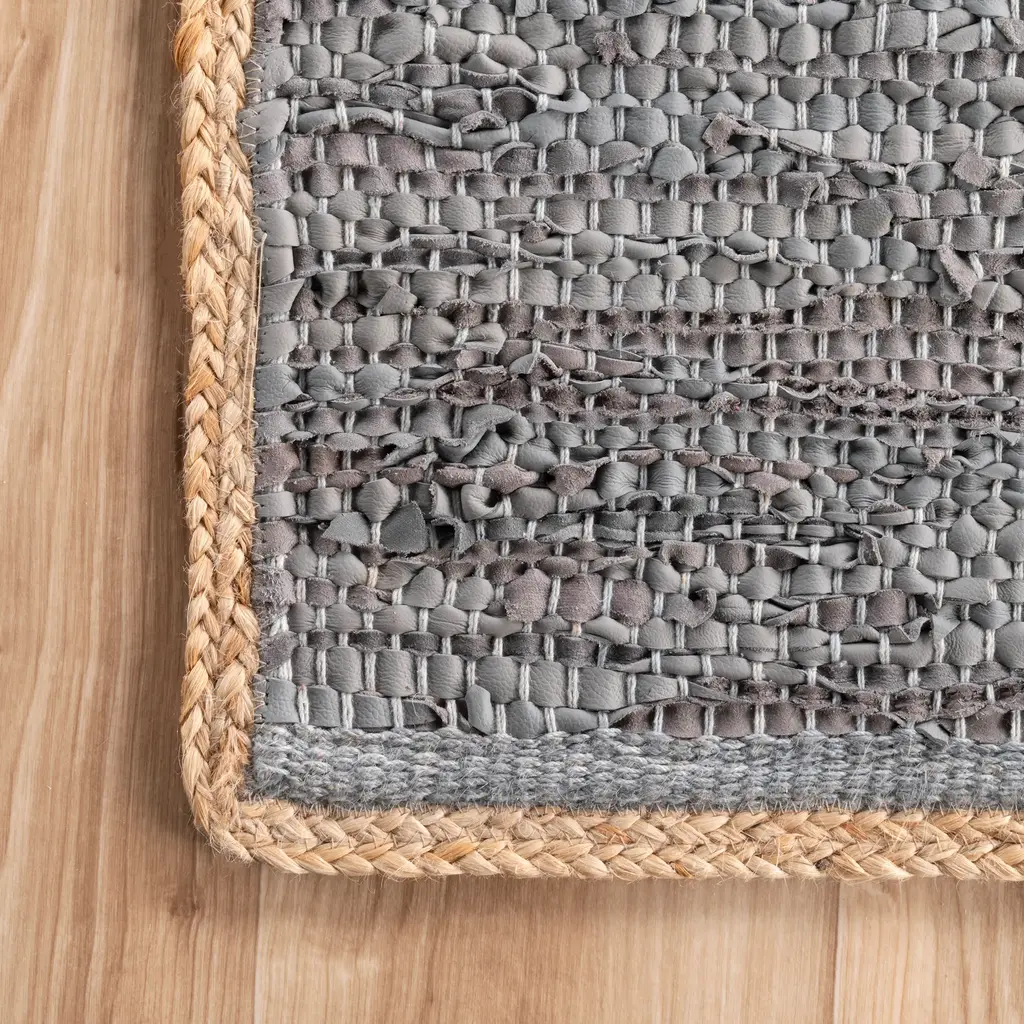 Elevate the casual allure of your space by pairing it with this bold design. A solid and sophisticated pattern brings the perfect edge to your living space. This thin border around this area rug captures the eyes of anyone who sees it. Crafted of leather and hemp, this area rug promises a luscious texture underfoot. With our wide assortment of sizes, make the most of your time at home with our pet-friendly and easy to clean area rugs.
