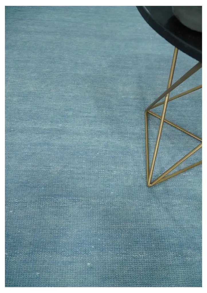 This Solid Plane Blue Custom Made Modern Hand knotted wool Area Rug is expertly crafted using the finest 100% wool fibers. Its bold color and unique design make it a stylish addition to any room, while its hand-knotted construction ensures superior quality and lasting durability. Hand-Knotted SIZES ARE MADE TO ORDER IN 30-45 DAYS Made with Wool Low Pile Rug Color : Blue Made with 28 knots per square inch This specific rug is made in India, in the city of Bhadohi. Bhadohi is one of the biggest rug manufacturing cities. Carpet weaving in the region dates back to the 16th century during the reign of Akbar. The skilled artisans of Bhadohi have been carrying the tradition of rug-making for centuries. USERS GUIDE Avoid prolonged moisture Vacuum regularly and/or shake to remove dust Do not pull any loose threads. Use scissors to simply cut the ends The blot spills immediately with a white cloth. Harsh chemicals may damage or fade the rug Use rug protectors under heavy furniture