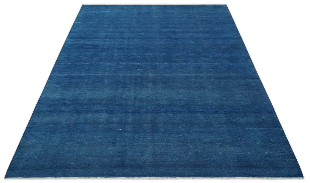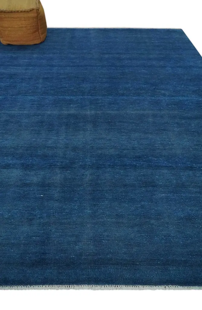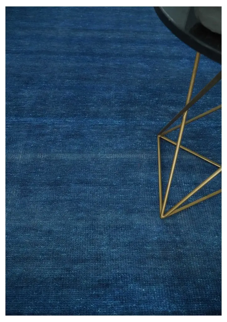 This Solid Plane Blue Hand knotted Modern Rug is constructed of premium wool to provide softness and durability, perfect for any modern home. Hand knotted with custom details, the rug adds a unique customized element to any space. Perfect for any living room or bedroom. Hand-Knotted Turkish Knot SIZES ARE MADE TO ORDER IN 30-45 DAYS Made with Low Pile Wool Color : Blue Made with 28 knots per square inch This specific rug is made in India, in the city of Bhadohi. Bhadohi is one of the biggest rug manufacturing cities. Carpet weaving in the region dates back to the 16th century during the reign of Akbar. The skilled artisans of Bhadohi have been carrying the tradition of rug-making for centuries. USERS GUIDE Avoid prolonged moisture Vacuum regularly and/or shake to remove dust Do not pull any loose threads. Use scissors to simply cut the ends The blot spills immediately with a white cloth. Harsh chemicals may damage or fade the rug Use rug protectors under heavy furniture