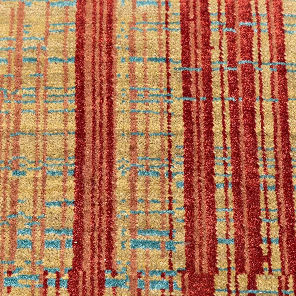 From the Unstring By Kavi collection, this hand-knotted rug features a luxurious blend of 50% wool and 50% bamboo silk. The interplay of bright gold and copper tan evokes sun-drenched dunes, offering a sophisticated canvas with depth and dimension. The shimmering gold base and subtle copper tones create a captivating play of light and shadow. Available in various colors, shapes, and sizes, this rug can also be customized to fit any space and style. Crafted in India.