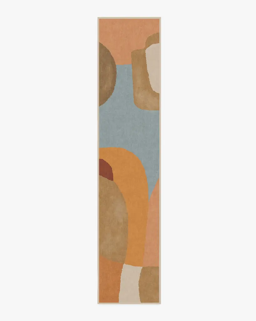 Decorate wild with our Justina Blakeney Sonia Sand & Ocean Rug. Inspired by Justina's original painting, "Tomorrow," this Orphism-like design features Justina's hand-painted geometric shapes playfully intertwined. The color palette seamlessly blends warm neutrals and creams with and cool blues and soft sage greens. Water-resistant, stain-resistant, and machine-washable. Rug colors may vary slightly according to your device and the lighting in your space.