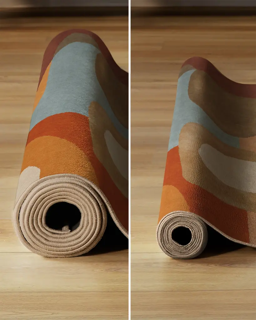 Decorate wild with our Justina Blakeney Sonia Terra & Sage Rug. Inspired by Justina's original painting, "Tomorrow," this Orphism-like design features Justina's hand-painted geometric shapes playfully intertwined. The color palette seamlessly blends terracotta, orange, peach, yellow, sage, chartreuse, cream, and dusty sky blue. Water-resistant, stain-resistant, and machine-washable. Rug colors may vary slightly according to your device and the lighting in your space.
