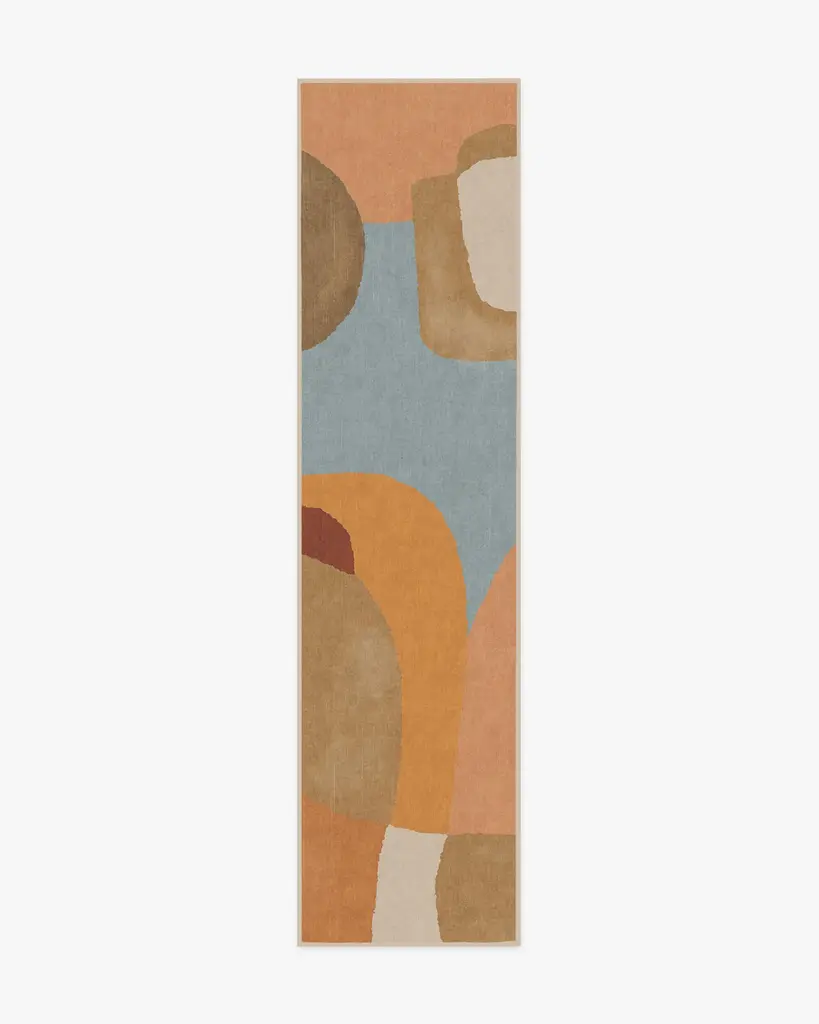 Decorate wild with our Justina Blakeney Sonia Terra & Sage Rug. Inspired by Justina's original painting, "Tomorrow," this Orphism-like design features Justina's hand-painted geometric shapes playfully intertwined. The color palette seamlessly blends terracotta, orange, peach, yellow, sage, chartreuse, cream, and dusty sky blue. Water-resistant, stain-resistant, and machine-washable. Rug colors may vary slightly according to your device and the lighting in your space.