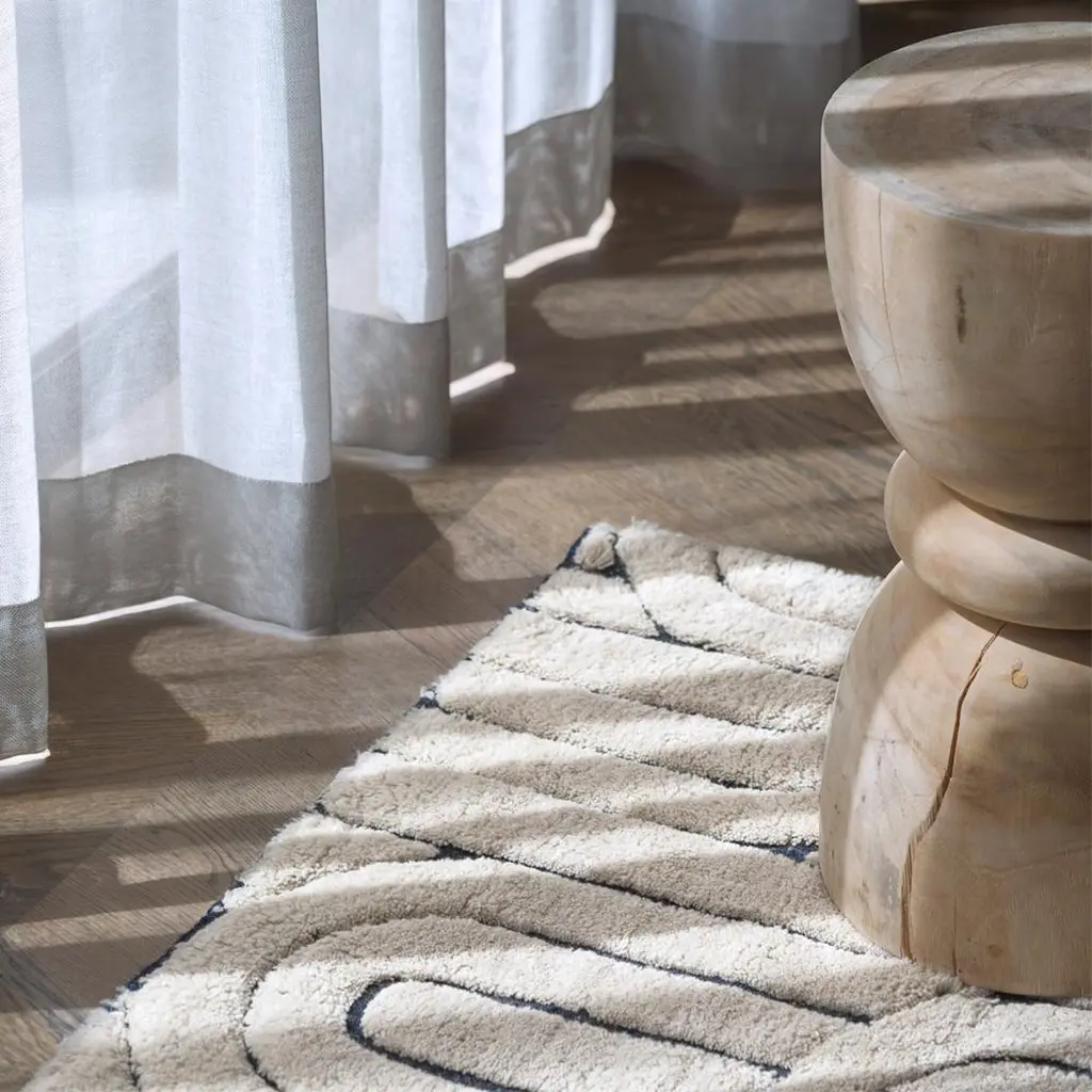The reality weave features curved organic shapes mixed with clean contrasting lines. This bold and modern style is the perfect hero piece for any space. This soft, sophisticated and luxurious weave is the ideal neutral base with pop of pattern.All ground control rugs are hand loomed to order – Please allow 6-8 weeks for delivery.We are able to approve a 50% deposit to make your rug, with balance prior to delivery.Composition : Wool 75% – Cotton 25%See our T & C’s and Product Care for further information.