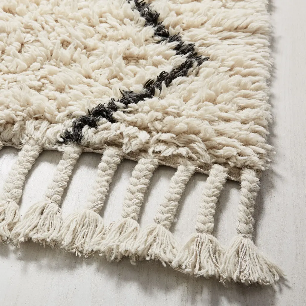 Its minimal, Moroccan-inspired pattern. Each is handwoven using 100% wool. Hand braided tassels add visual appeal. Select colors are Fair Trade Certified™.