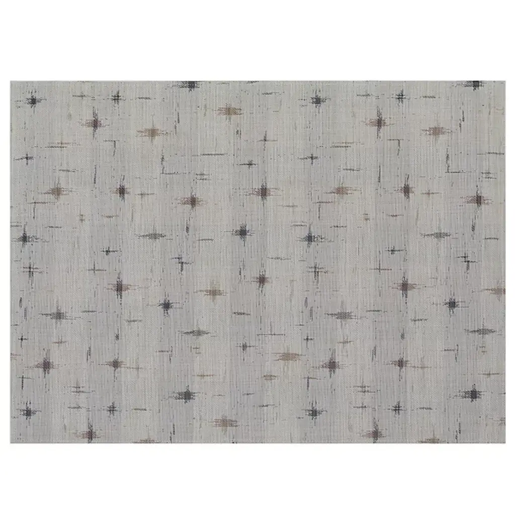 The Spark Rug from Chilewich delights and enriches its environment with a rectangular form adorned with subtle sparkle patterns. Designed by Sandy Chilewich, this durable rug is made from phthalate-free TerraStrand yarns and Microban. Its vinyl and polyester blend ensures long-lasting quality and easy maintenance, making it both a practical and artistic addition to any Contemporary living space.