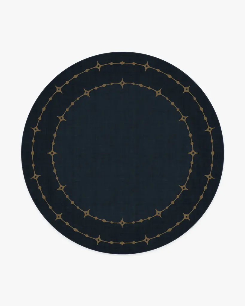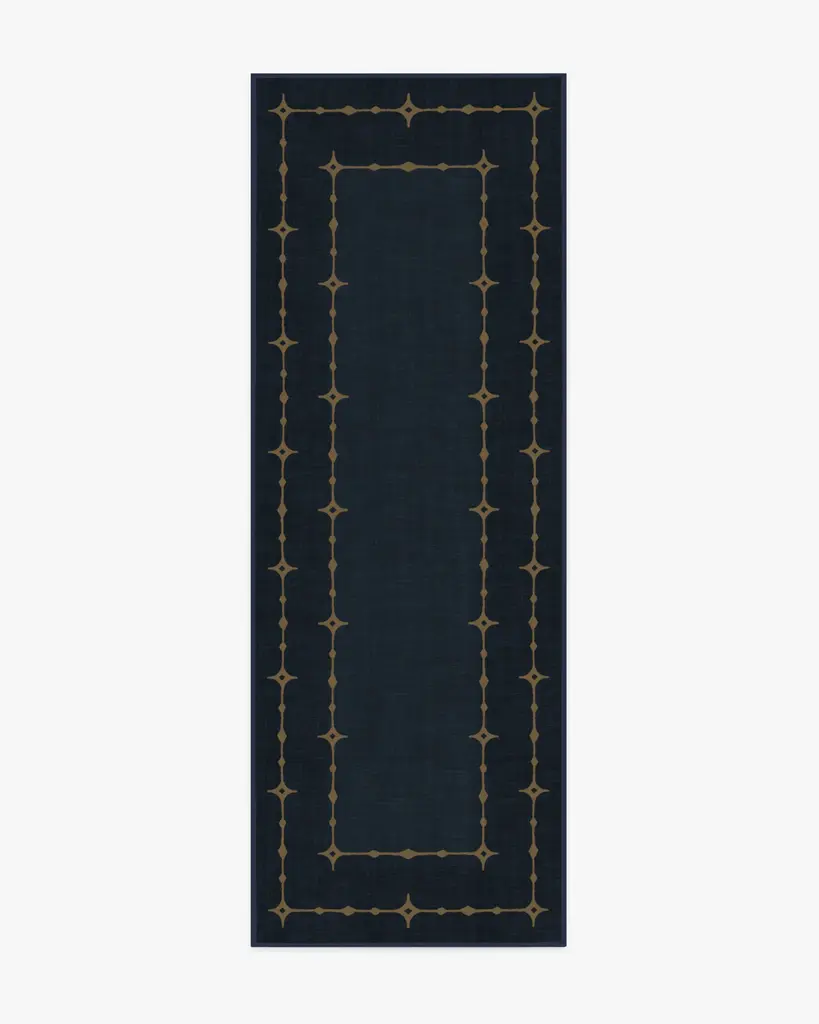Transform your space into a starry dreamland with our Sparkle Border Dark Navy Rug. This celestial holiday design enchants with a starlit, gold-toned border filled with sparkling dots and diamonds that truly shine against a deep navy background. Water-resistant, stain-resistant, and machine-washable. Rug colors may vary slightly according to your device and the lighting in your space.