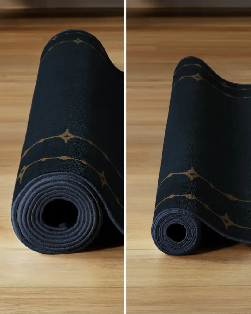 Transform your space into a starry dreamland with our Sparkle Border Dark Navy Rug. This celestial holiday design enchants with a starlit, gold-toned border filled with sparkling dots and diamonds that truly shine against a deep navy background. Water-resistant, stain-resistant, and machine-washable. Rug colors may vary slightly according to your device and the lighting in your space.