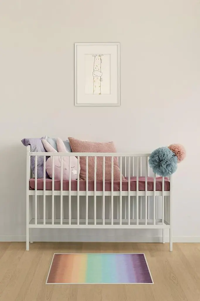 Our Spectrum Rainbow Rug is what kids' bedroom dreams are made of. Seventeen happy colors, with a mesmerizing watercolor wash effect, come together to create this playful rainbow stripes motif that's sure to brighten the mood in any kid's room.