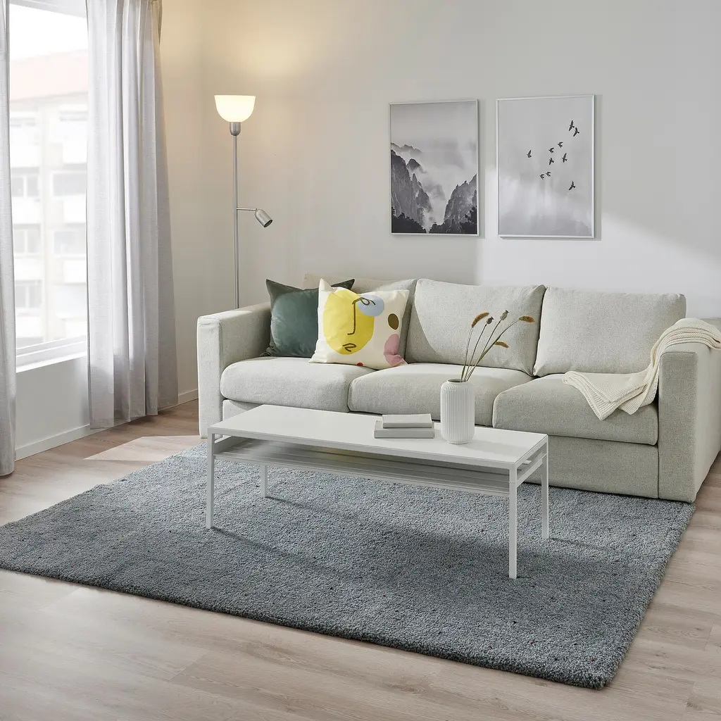 SPENTRUP Rug, high pile - light gray-turquoise/dotted 5 ' 3 "x7 ' 7 ". Soft and fluffy for your feet or for play. Durable and will not shed since the rug is made of polypropylene. Use STOPP anti-slip underlay under the entire rug for increased safety. The rug is machine-woven.