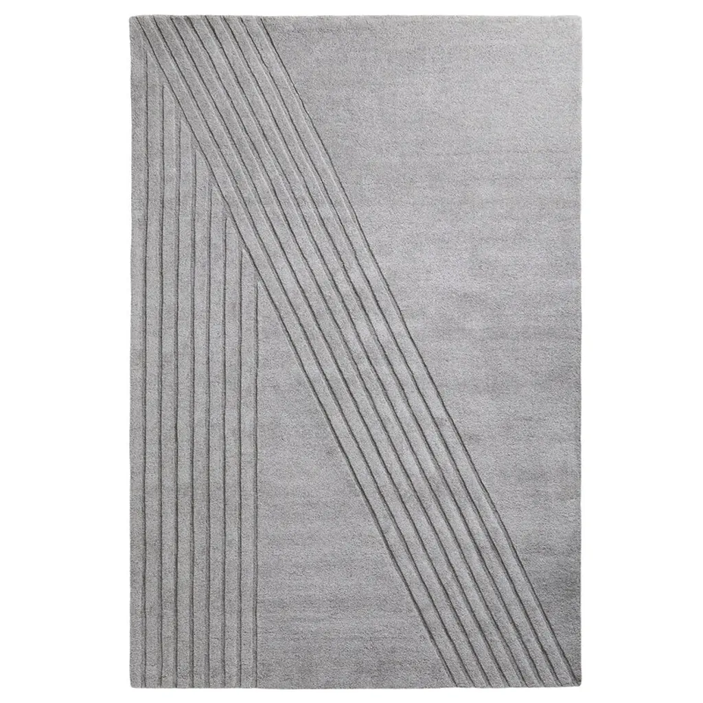 A lively addition to a modern decorated home, this rug is an elegant and refined design by Giulio Brambilla. Masterfully hand tufted in India from New Zealand wool using a light carving technique that enhances its three-dimensional quality, it boasts a flipped motif of light blue spikes on a white background. This rug is available in other colors and sizes, and in a hand-knotted version upon request.