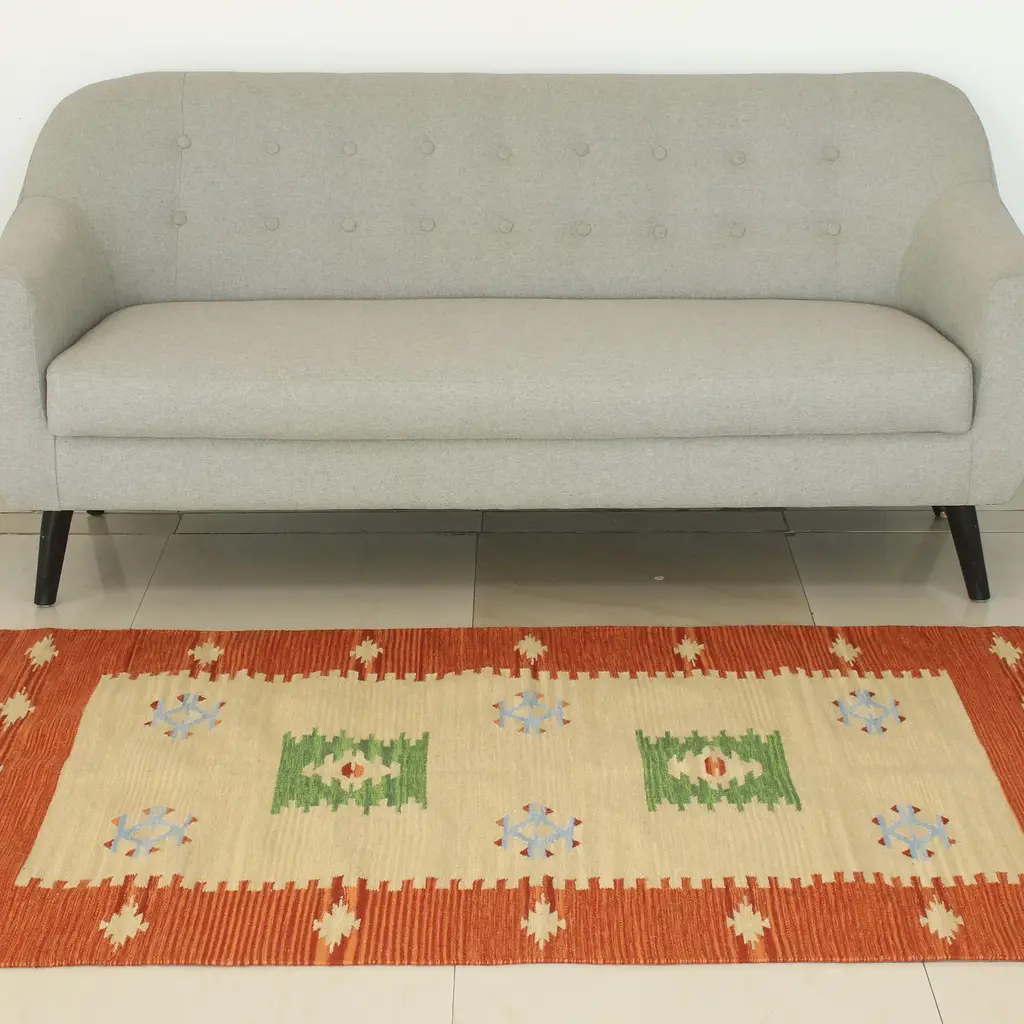 Spiral Pattern Geometric Wool Area Rug From India (4x5.5)- Spiral Brilliance