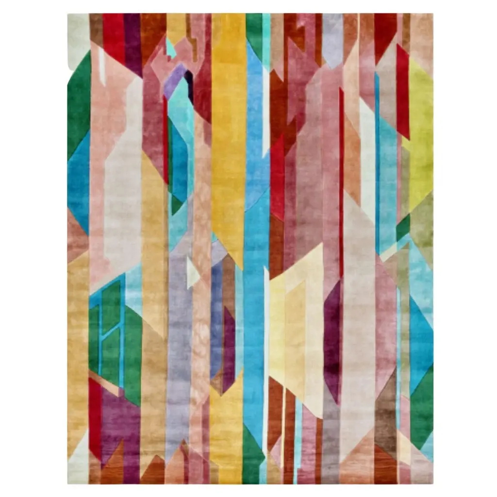 Design Collection rugs are customizable in terms of size, colors and composition. This particular version is the Spirit Ver.A Rug featuring stupendous geometric shapes and colors that will bring an aspect of warmth and a sense of delight to the sitting area. Made from a mix of silk and Himalayan wool, it measures 300 x 240 cm.