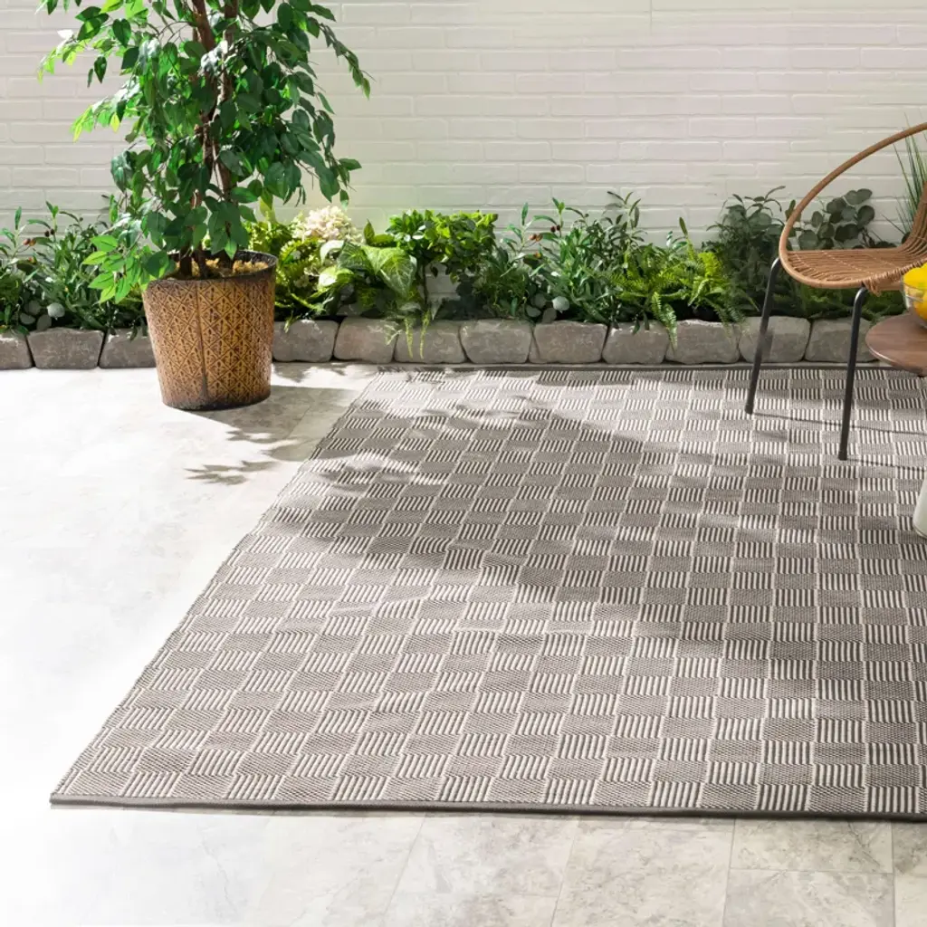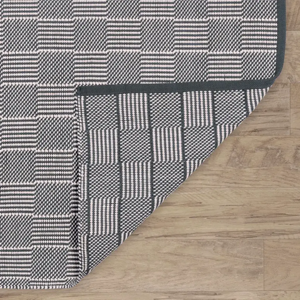 This flatweave buffalo check rug has you covered with both style and durability. The fresh checkerboard design of mini checks and stripes is sure to brighten any floor, from the playroom to the pool patio. Made from long-lasting polypropylene, a synthetic fiber that dries quickly, won't fade over time, and can stand up to a stampede of foot traffic.