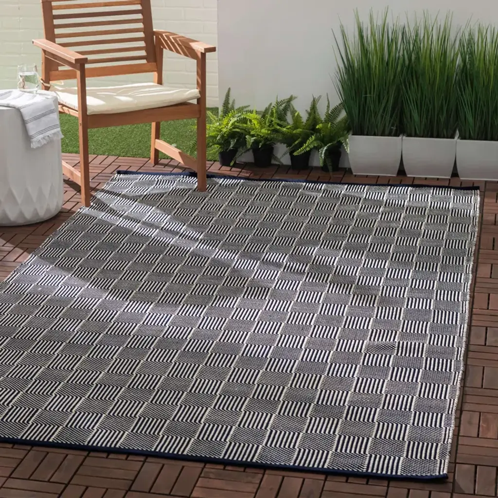 Squares Handmade Navy Indoor/outdoor Rug