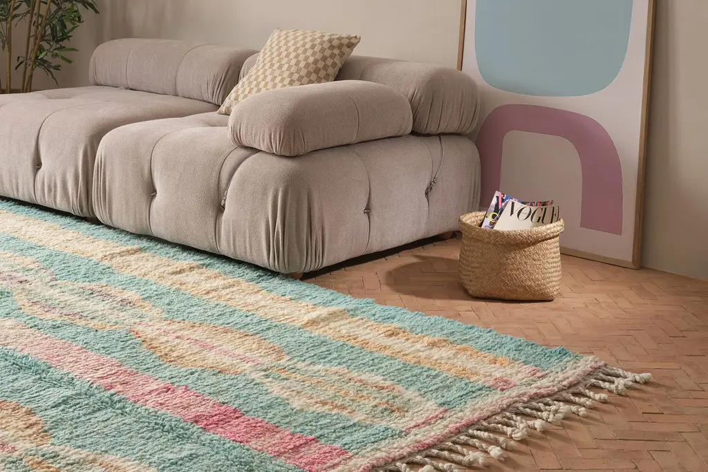 One-of-a-kind new rug, hand-knotted near the small city of Boujad in the Chaouia-Ouardigha region of Morocco
