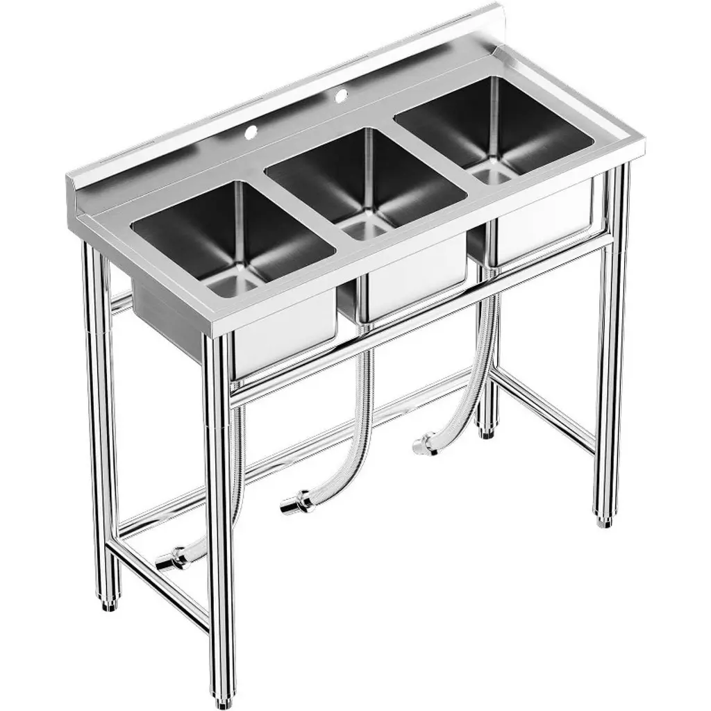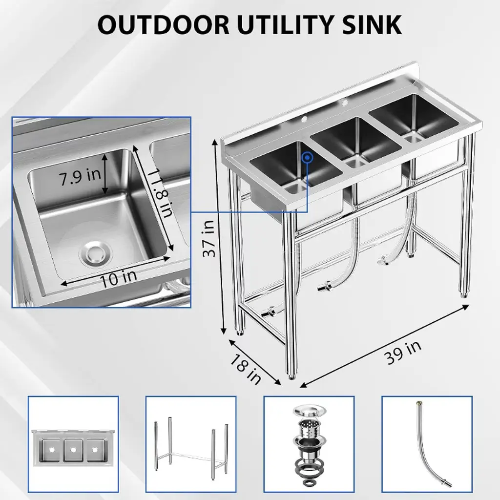 Every kitchen, garage, or workspace needs that one reliable fixture that just works—day in, day out, without fuss. This NSF-certified stainless steel sink is built to be exactly that. Whether you're running a bustling restaurant kitchen, prepping ingredients at your café, tackling messy garage projects, or just need a heavy-duty sink for laundry and chores at home, this 4-compartment utility sink delivers where it counts. Made from high-grade stainless steel, it shrugs off rust, stains, and daily wear like it’s nothing. No flimsy materials here—just solid construction that holds up under heavy use. The adjustable legs keep it steady even if your floor isn’t perfectly level, so you won’t deal with wobbling or spills. Clogs? Not happening. The smart drainage system uses a removable filter basket to catch food scraps, grease, or debris before they cause trouble, while the reinforced PP pipes ensure water flows fast without bending or cracking over time. No more standing around waiting for the sink to drain. With its deep, roomy basin, you’ve got space to tackle big jobs—soak oversized pots, scrub muddy boots, or wash a stack of dishes without feeling cramped. The open shelving underneath keeps cleaning supplies handy, and the child-safe storage keeps tools secure but within reach. Plus, the hollow design means no trapped water or grime buildup—just wipe it down and keep moving. This sink fits wherever you need it: behind the counter at your burger joint, in the garage for post-mechanic cleanup, or even in the backyard for gardening tasks. It’s the kind of upgrade that makes daily life smoother, whether you’re a pro or just someone who appreciates gear that lasts. No over-the-top promises—just a sink built to handle real work, day after day. If you’re tired of flimsy setups that can’t keep up, this one’s worth a look.