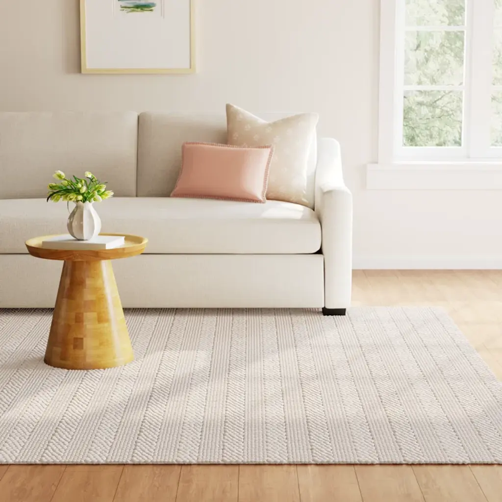 Welcome guests into your space with the help of this bleached area rug. It's hand-loomed in India from a jute and cotton blend, and its knit-inspired design of alternating stripes brings a cozy vibe to low-traffic locations. Our favorite part? It comes in a range of sizes, so you’re likely to find one that fits your space. Pair with a rug pad to keep it from shifting underfoot and to add a little extra cushioning.