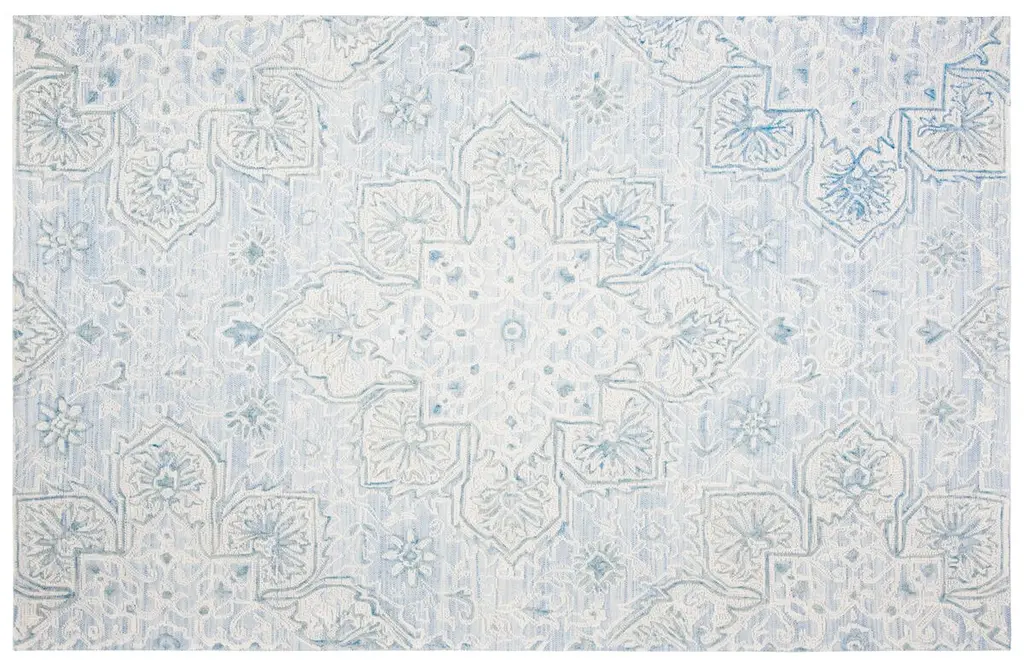 Starfish in Blue is a rectangular wool rug.Zollanvari Fine Gabbehs.Trees, flowers and animals (principally lions) are design themes that are used by tribal women to weave some of Zollanvari’s most original Gabbehs. The weavers are given patterns and colour ranges (often inspired by ancient and archaic patterns such as the ‘Tree of Life’) but have a free hand in producing these works of woven art using their imaginations and the traditional design vocabulary passed down through each new generation of weavers. This makes each Gabbeh unique and individual. Flora & Fauna design Gabbehs are also available in Zollanvari Super Fine (Kashkuli, Luribaft and Bulurbaft) and Zollanvari Fine qualities.The designs are available in custom and bespoke sizes and colours.