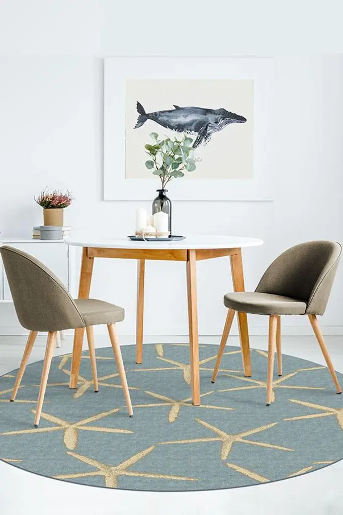 Like wading through a real tide pool, you'll want to go barefoot on our Starfish Pale Blue rug. Hand-drawn sea stars in golden beige and natural hues appear as if they are floating in shallow waters colored in light slate blue, grey-blue and pale blue-green. This seaside accent will add charm and character to any coastal, contemporary or modern interior.