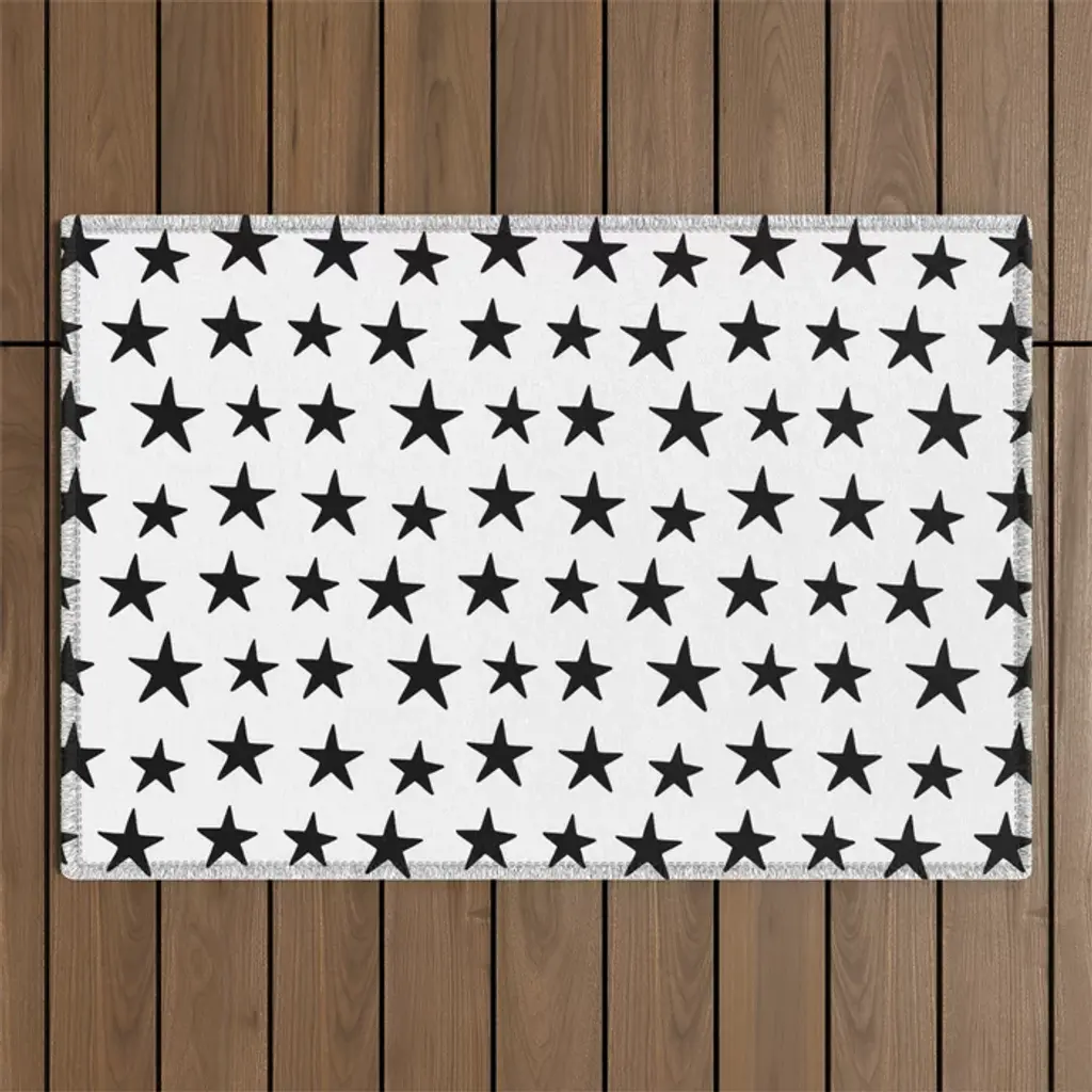 Enjoy a new style this season with a Stars with Blue and Red Indoor/outdoor Rug from our Funky Junky Collection. Everyone will delight in the space defining design brought to your porch, patio, kitchen, or bathroom by this area rug. The artistic and colorful design is printed on a soft polyester base with a skid resistant backing, making it a perfect way to add color, flare and personality to any indoor or outdoor space. To clean, use a mild soap and lay flat to dry.