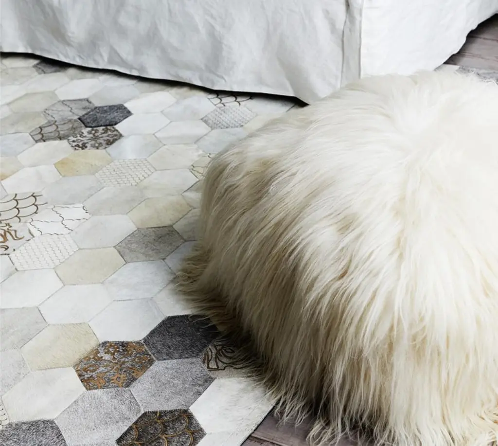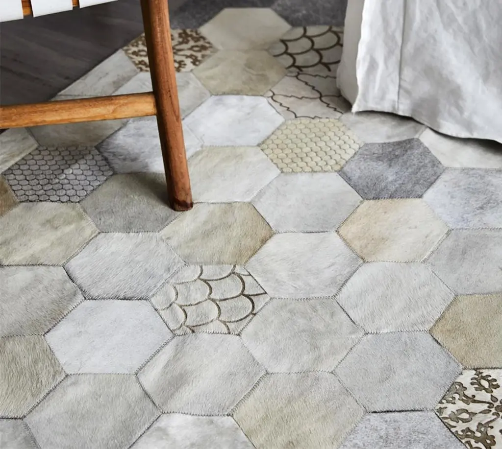 This high-impact, jaw dropping beauty fashionably displays all of Art hide’s signature laser burns has now been adapted in beautiful tones of grey and cream is sure to create a statement and turn heads.This rug is created from premium quality cowhide, sourced from Brazil and Argentina. The Atomo is cut to precise angles and then pieced together using commercial grade nylon thread to create its stunning effect. Small measures 2 x 1.6m (6’7” x 5’3”) and large measures 2 x 3M (6’7” x 9’8” )This item can easily be customized to any color size or shape upon request.Art hide rugs are usually made to order. please allow 4 weeks for delivery.