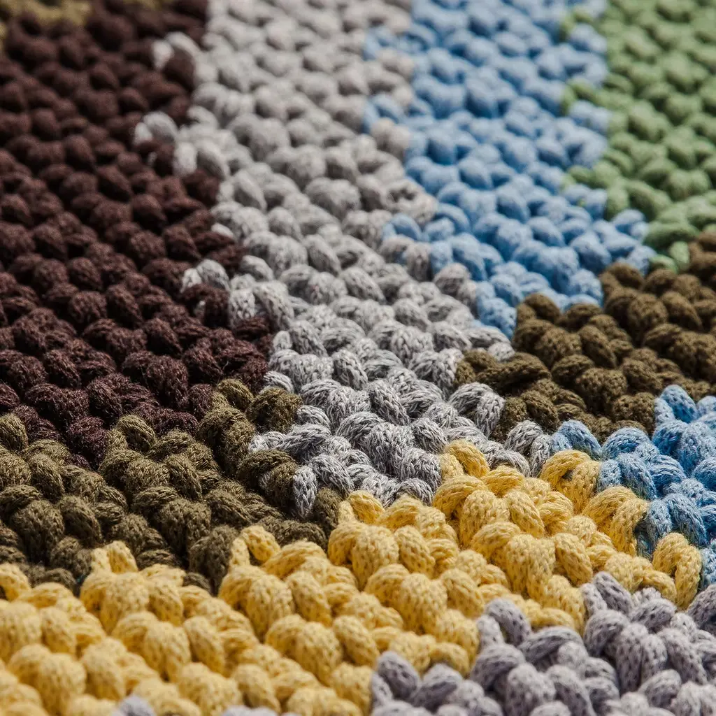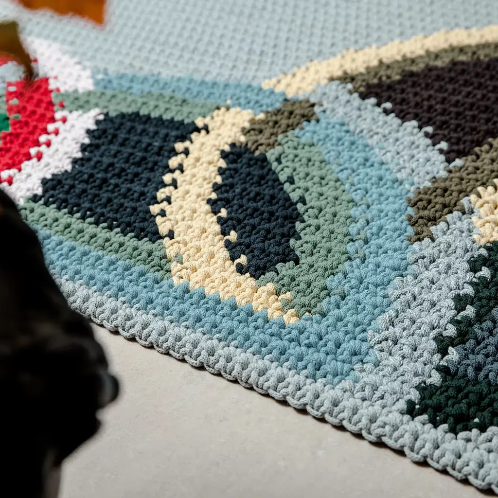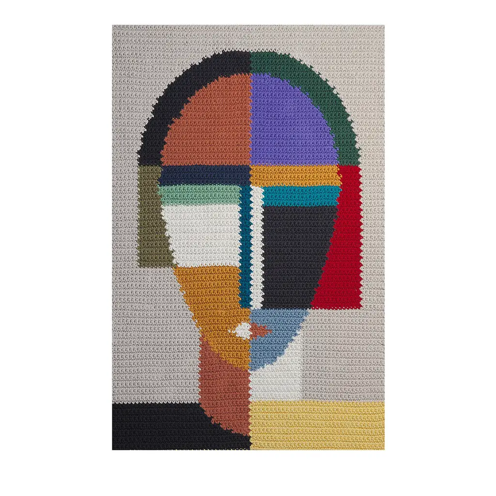 Masterfully hand-crocheted from a recycled and natural cotton fabric and colored without using chemical dyes, this stunning rug combines sustainability with an elegant and modern aesthetic. A unique and inventive statement piece, it flaunts a striking geometric and colorful decoration inspired by the Suprematism art movement. This rug is customizable in size upon request to the Concerige.