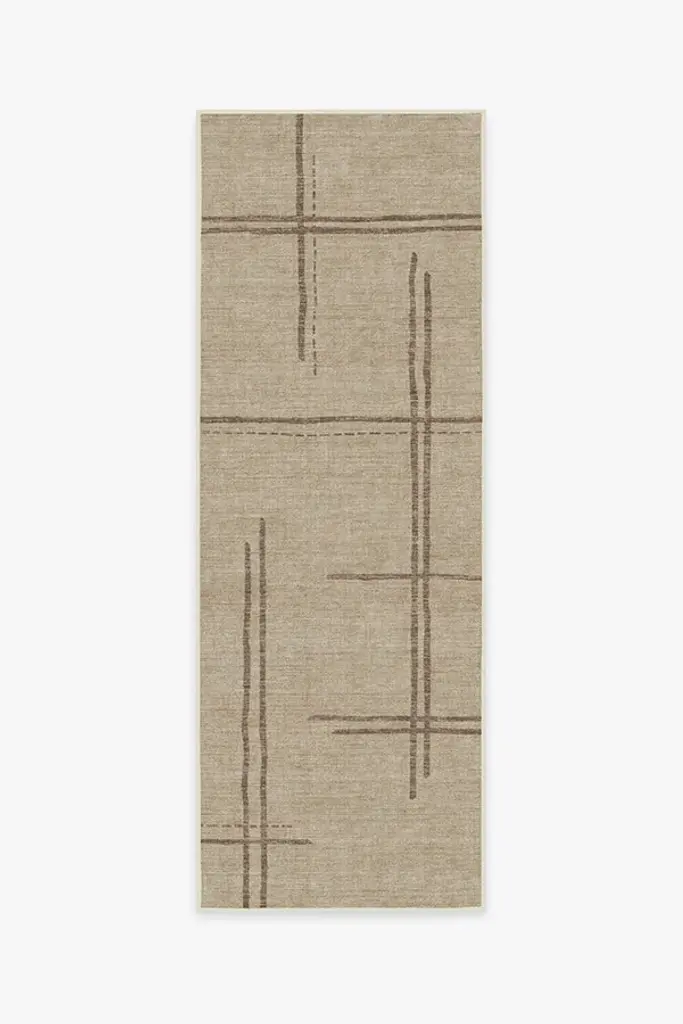 Create a warm and welcoming home with our Stellan Latte Brown Rug. Featuring hand-drawn asymmetrical grid lines, this modern and muted design uses taupe linework against a soft beige background to establish its warm vibe. Water-resistant, stain-resistant, and machine-washable. Rug colors may vary slightly according to your device and the lighting in your space.
