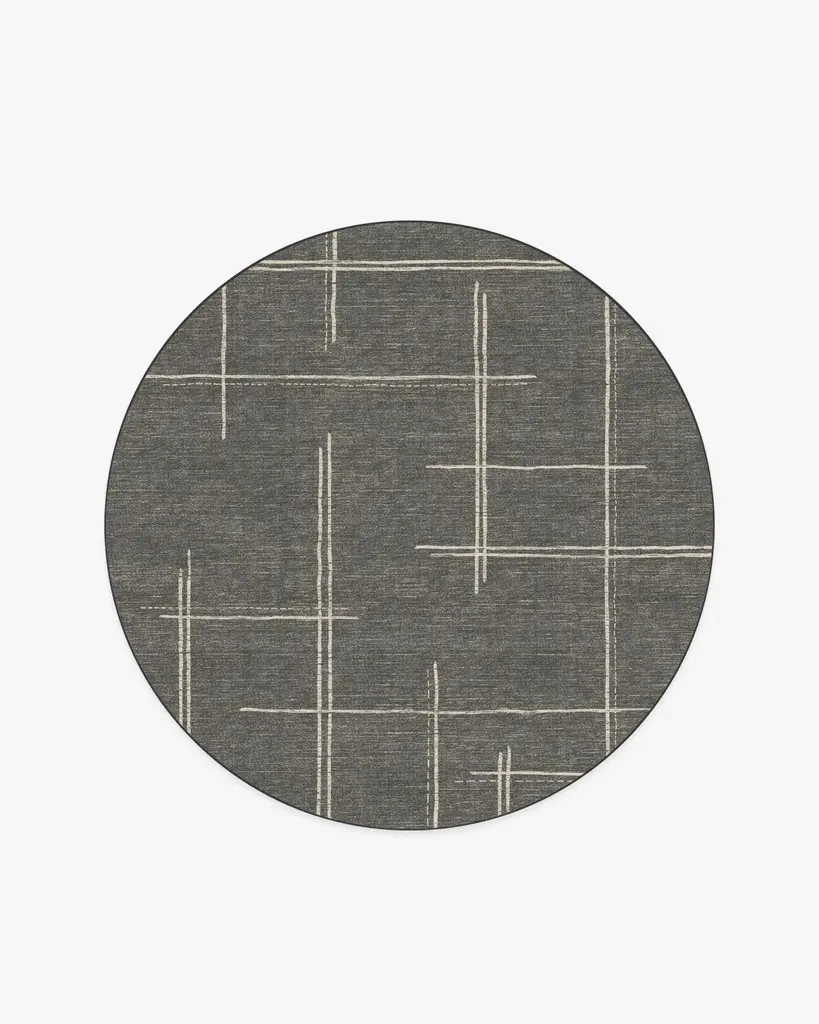 Featuring hand-drawn grid lines in a muted palette, our Stellan Sage Rug blends cherry wood brown linework against a sage green background. Water-resistant, stain-resistant, and machine-washable. Rug colors may vary slightly according to your device and the lighting in your space.